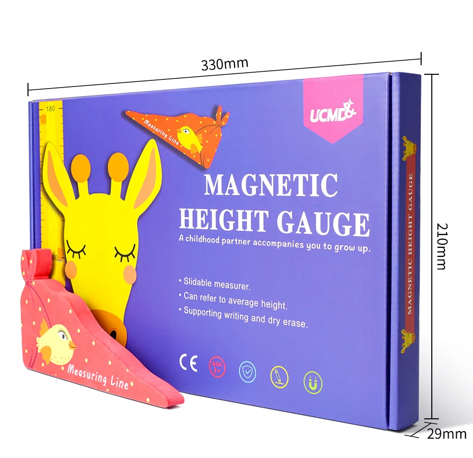 Название: магнитная линейка высоты Материал: ЭВА, резина, ПЭТ, пластик Характеристики: Измерьте рост для детей и записывайте, удерживайте магнит, украшение Использование: для детской комнаты, классной комнаты, школы Упаковка: Подарочная коробка Аксессуары: 1 жираф, 1 Магнитный шарф, 4 линейки для измерения, 1 Гибкая линейка, 1 ручка для доски