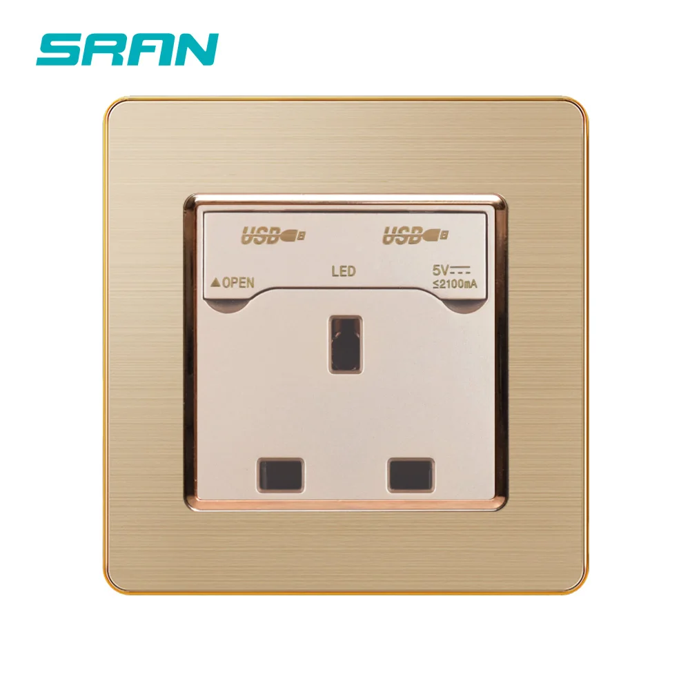 13A розетка с usb(86 мм * 86 мм) Двойной выход usb 5V2.1A Usb С Пылезащитным покрытием Матовая панель из нержавеющей стали белый/золотой/черный