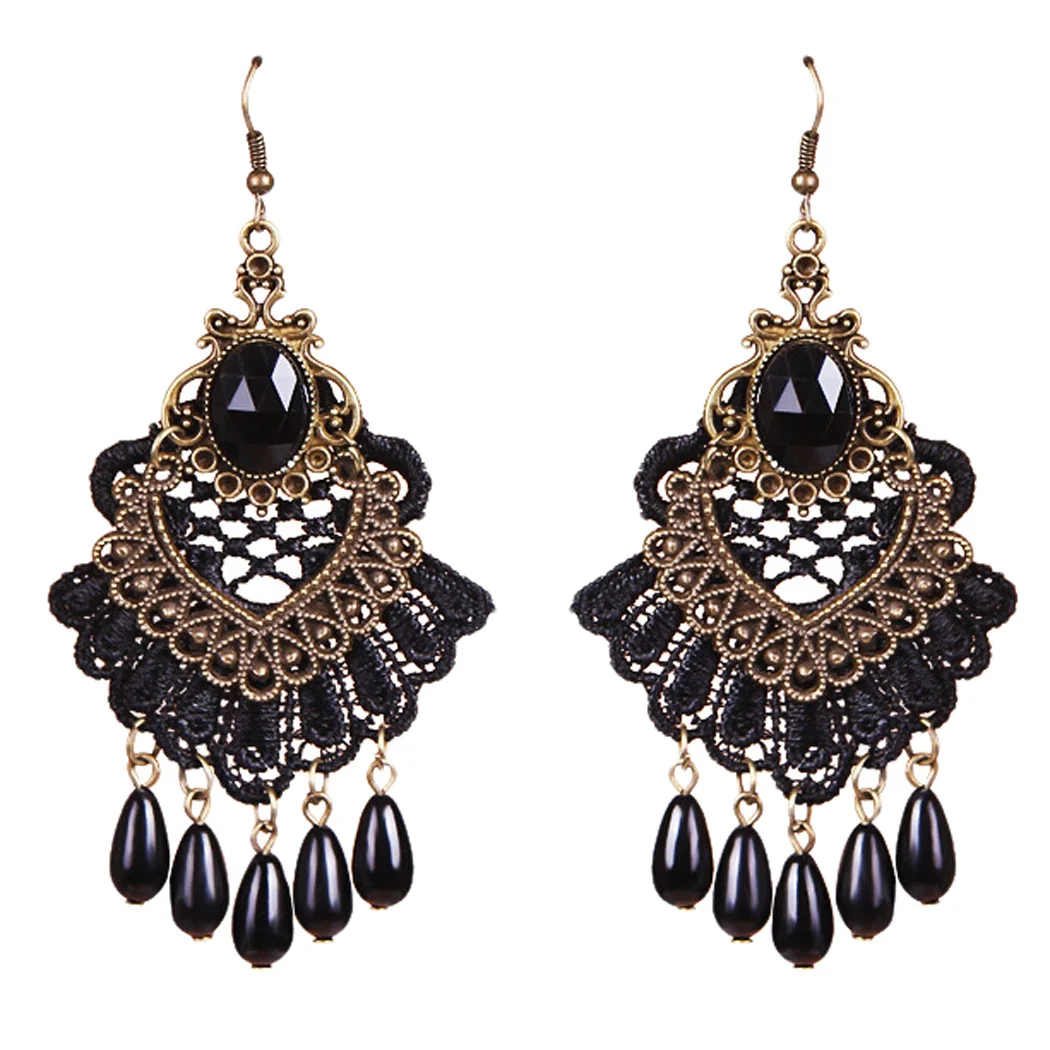 Винтажные черные кружевные висячие серьги на Хэллоуин для женщин, кружевные длинные серьги с цветочным узором, готические аксессуары для бижутерии