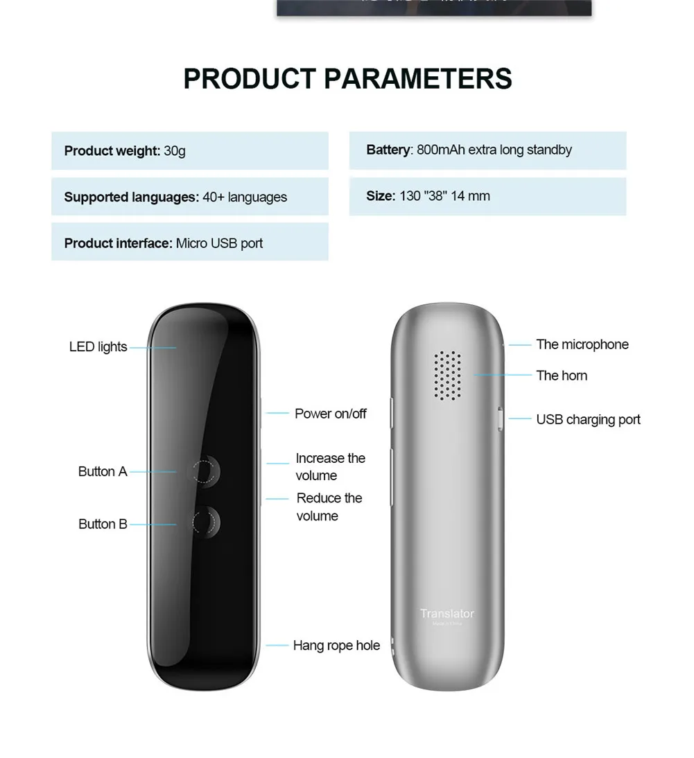 Ight & Portablemall объем и легко носить с собой. Устройство для перевода очень подходит для учебы, создания друзей, ведения бизнеса, шопинга, путешествий за рубежом. И это хороший подарок для себя или ваших друзей.
