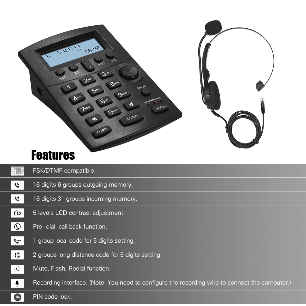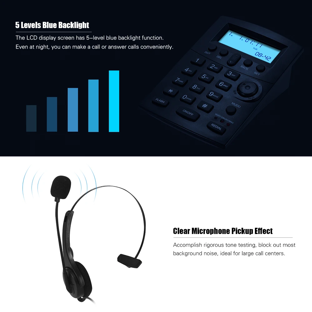 HST-8000 телефонная связь имеет мощные функции, которые подходят для нескольких сценариев применения, таких как telemarketing, financial service, общественные службы и т. Д. Эргономичный дизайн, удобно носить, легко видеть ЖК-дисплей.
