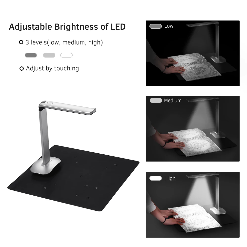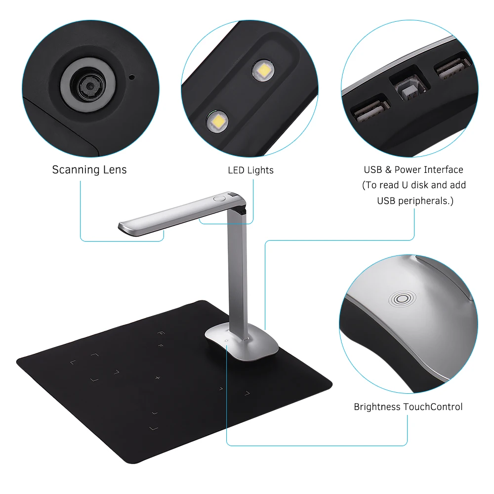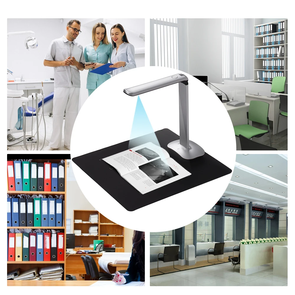 Портативный сканер документов Aibecy специально разработан для использования в офисе, классе, библиотеки, банке, больницах и т. д. С датчиком изображения super HD (15 мегапикселей), он может достичь высокой скорости (около 1 секунды) сканирования в реальном времени. С верхней конструкцией CMOS датчика, регулируемая высота и Макс. Размер сканирования до A3, который увеличивает типы документов или объектов, которые могут быть отсканированы, такие как документы, которые имеют различные размеры и формы или в папках, и предметы, такие как книги, журналы, удостоверение личности, паспорт, И т. Д. Он также поддерживает фотосъемку, Создание PDF и другие функции. Светодиодный светильник с регулируемой яркостью делает сканирование более точным и четким. Складная конструкция размера, удобная для движения и переноски на открытом воздухе. Благодаря этому ваша работа станет более удобной, более эффективной и экологически чистой.