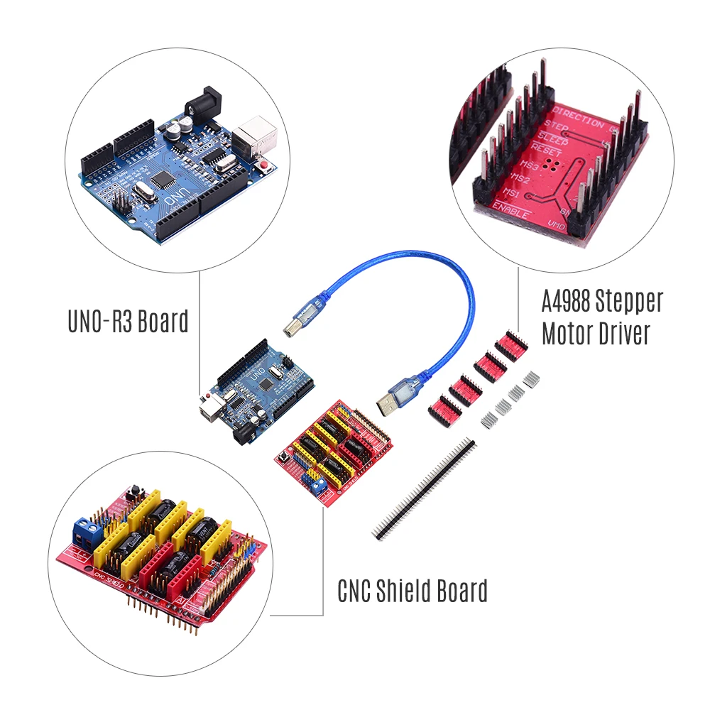 CNC shield uses removable A4988 or DRV8825 compatible stepper drivers; the CNC shield extension board can be used for carving machine, 3D printer driver expansion board.