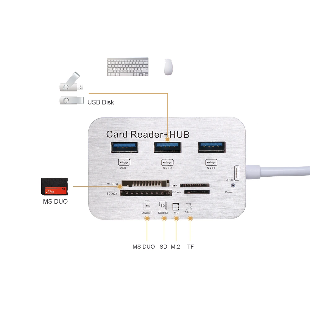 Концентратор с 7 портами поддерживает чтение карты. Удовлетворить ваши различные потребности.