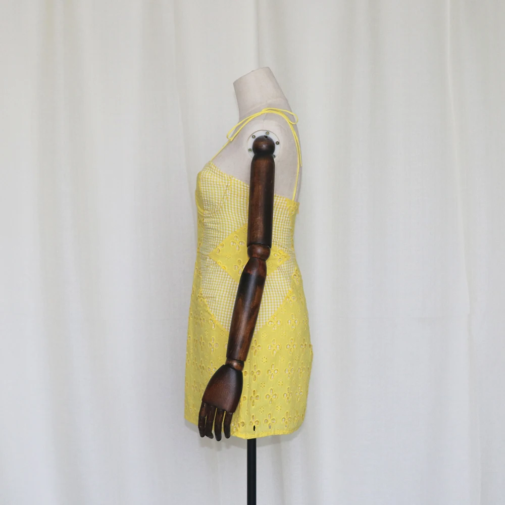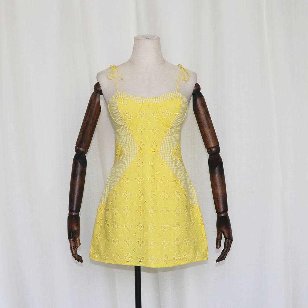 Желтое платье с принтом лимоны для женщин, сексуальное кружевное платье с высокой талией, богемные пляжные вечерние платья, уличная одежда, обтягивающее мини-платье трапециевидной формы