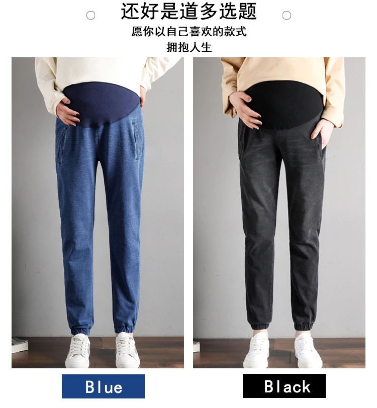 Осенние новые трикотажные ковбойские брюки для беременных женщин, модные повседневные штаны для беременных с высокой талией, спортивные брюки для беременных