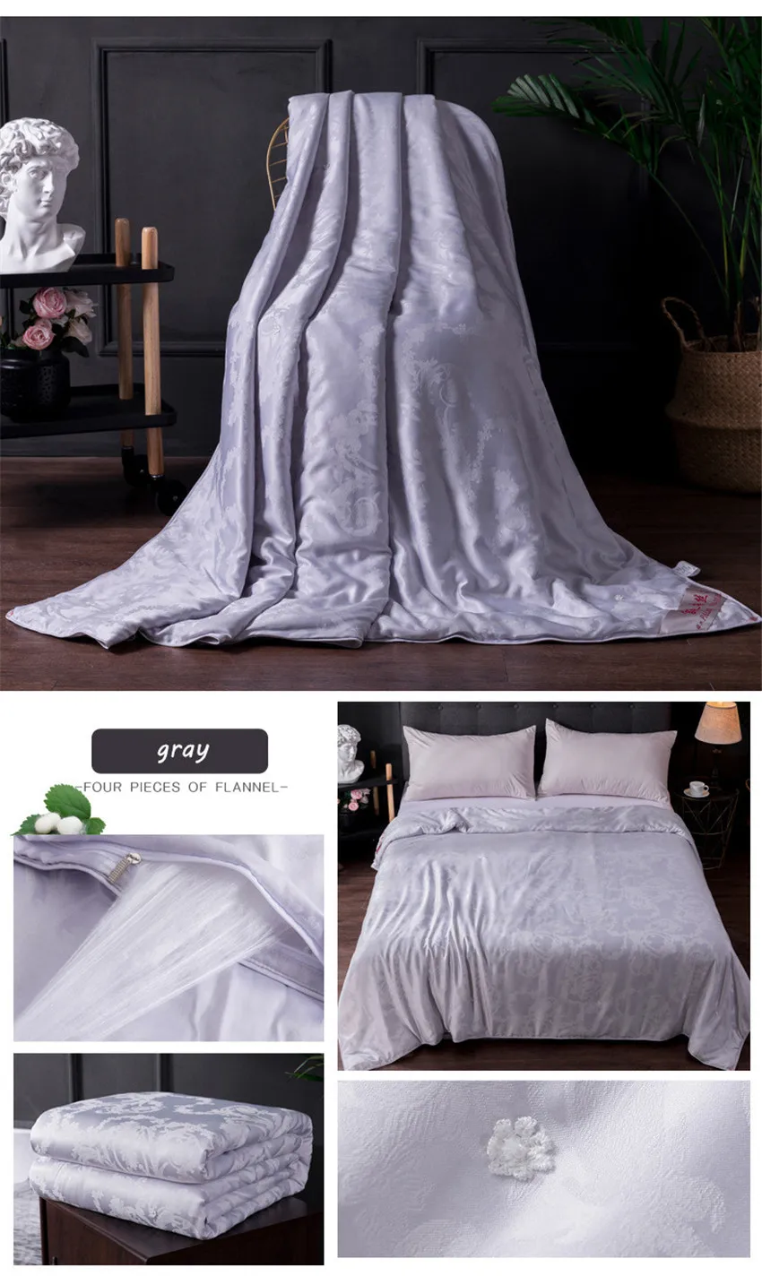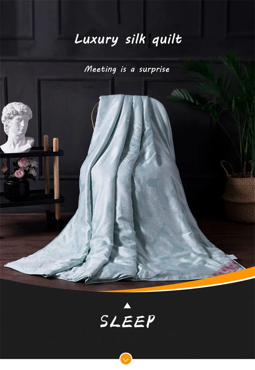 Название: Модал шелковое одеяло ручной работы Материал: 55% шелк + 45% хлопок Ткань: вискозное волокно Размеры: 200*230 см Вес: 1750 г Особенности: Этот шелк изготовлен вручную через 52 процесса. Одеяло мягкое, шелковистое и плотное. От выращивания листьев тутового дерева до экстракции шелка, литья одеяла, от материалов до производственных процессов, мы очень сложные, потому что мы преследуем зеленый, экологически чистый, удобный и классический! Посылка: 1 шелковое одеяло, не содержит украшений.
