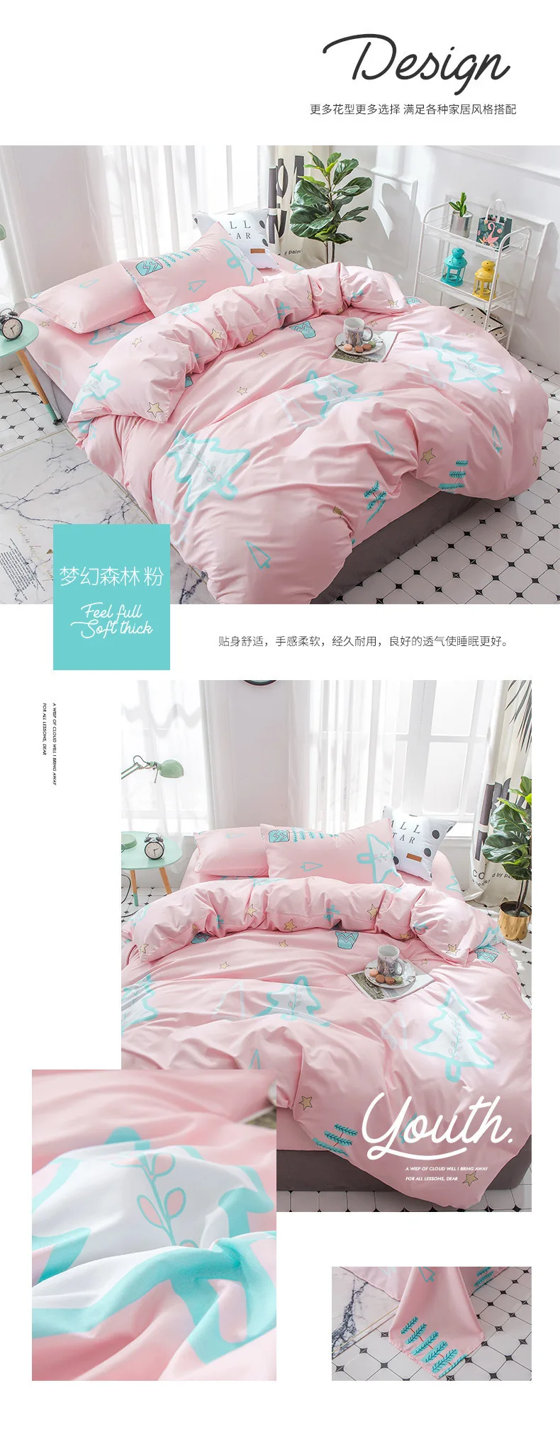 Один 1,5 м 3Шт. набор включает в себя:1 шт. пододеяльник 150x200 см, 1 шт.Простыня 160x220 см, 1 шт. наволочка 48x74 см