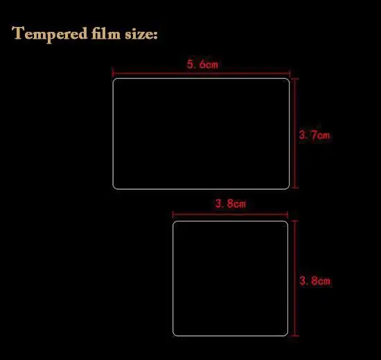 Размер закаленной ЖК-пленки: 55,8x37,9 мм
