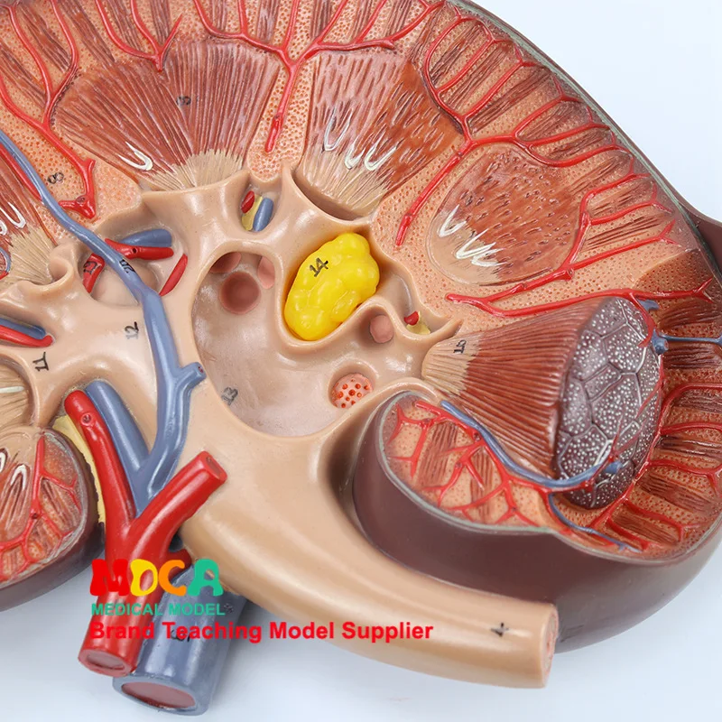 Модель продукта: MSZ006 Размер изделия: 27*19*5 см Размер упаковки: 30*20*20 см Вес упаковки: 1,0 кг Введение продукта: Эта модель показывает три раза увеличенные почки с надпочечной железой и двумя частями, показывая кору, медуллу, проксимально-спиральные тубулы, дистально-запутанные тубулы, петли, собирающие воздуховод, папиллярный канал, calyx, каликс, почечный таз, мочеточник, межклетчатая артерия, Вена, почечная артерия, Вены и надпочечников в почечной секции, и подсчет их. Идентификация персонажа, с текстовым описанием. Изготовлено из импортного ПВХ с защитой окружающей среды, ручная роспись, тонкое мастерство.