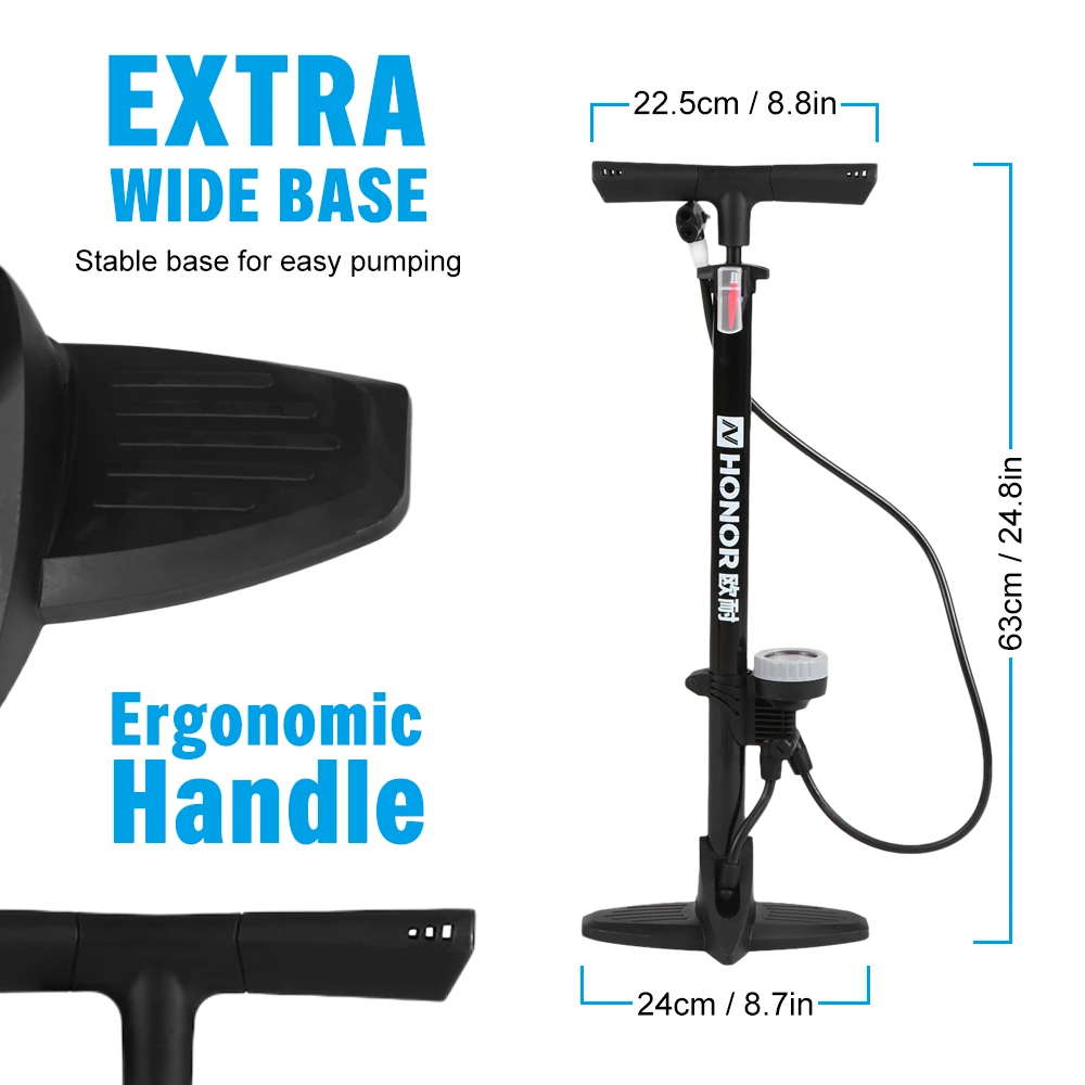 Этот напольный насос для велосипеда имеет двойной дизайн клапана, чтобы легко переключаться между клапанами presta и schrader. Он оснащен точным манометром, эргономичной ручкой и нескользящей педалью, чтобы облегчить надувание. Это отличный инструмент для велосипедиста.