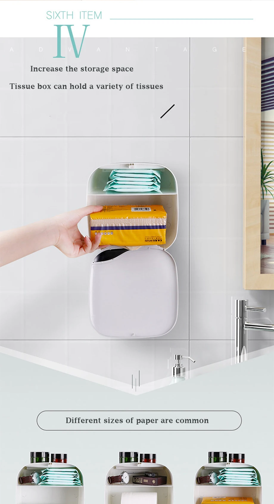 Информация о товаре: Цвет: зеленый, розовый, белый 3 цвета Материал: АБС-пластик Размер изделия: 20*20,5*13 см Установка: Настенный Характеристики: нормальный, обновления (с катушки) Применение: отель, туалет, ресторан, аэропорт, офисное здание, дом и т. Д. Особенности: 1. Легко установить 2. Новый стиль, модный и элегантный внешний вид 3. Прочный Новый АБС-пластик 4. Дизайн открывания кнопки, легко положить бумагу внутрь 5. Большая емкость, которая может удерживать мобильный телефон и другие мелочи 6. Подходит для различных мест: отеля, туалета, ресторана, аэропорта, офисного здания, дома и т. д. Посылка список: 1 * коробка с одноразовыми салфетками