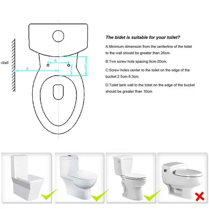 Самоочищающийся одинарная насадка для туалета очиститель для тела неэлектрический механический биде, туалетное сиденье, крепление для ванной комнаты, вилка европейского стандарта США Продукт Особенности: Наслаждайтесь очисткой биде, стирка лучше, чем протирание, и наслаждайтесь очищающим Биде высокого качества, Металлические Керамические стержневые клапаны Подача холодной воды, регулируемый спрей Выдвижные насадки автоматически убираются и самоочищаются, для обеспечения исключительной гигиены Легкая ручка управления Легко и быстро DIY, не электрическое биде подходит для большинства 2 частей унитаза, и некоторые 1-кусок унитаза Продукт Параметры: Материал: АБС-пластик Цвет: белый Размер: 39,5x15x11 см/15,6x5,9x4,3 дюйма Вода: холодная вода Насадка: Одинарная ножка Нам Стандартный: 15/16 дюймов Пластик разъем, прокладки DE Стандартный: 1/2 и 3/8 дюймов Медь разъем, прокладка Содержание упаковки: 1 х Крепление для биде, 1 х шланг, 1 х разъем, 1 х Руководство пользователя Примечание: Из-за разницы между различными мониторами изображение может не отражать фактический цвет изделия. Гарантируем, что стиль товара, представленного на изображениях, соответствует реальному стилю, но характеристики отдельных видов продукции отличаются от тех, что у данной модели. Спасибо!