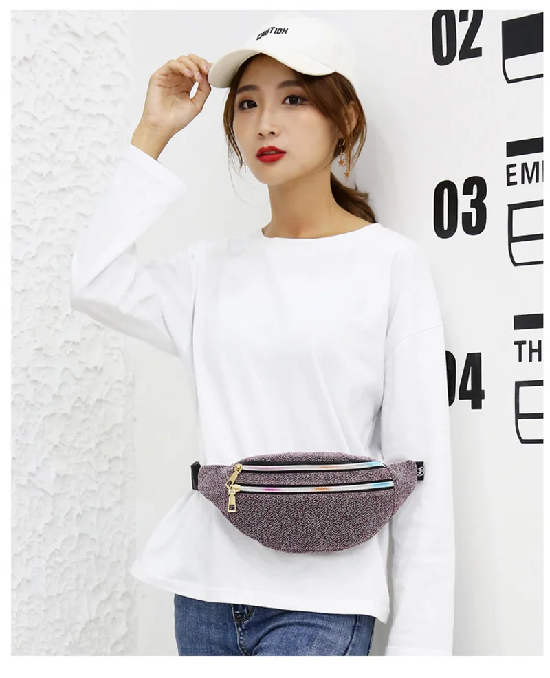 Поясная Сумка 2019, поясная сумка, Женская поясная сумка, сумка на бедрах из ткани Оксфорд, блестящий Карманный Кошелек с молнией, кошелек для мобильного телефона и ключей