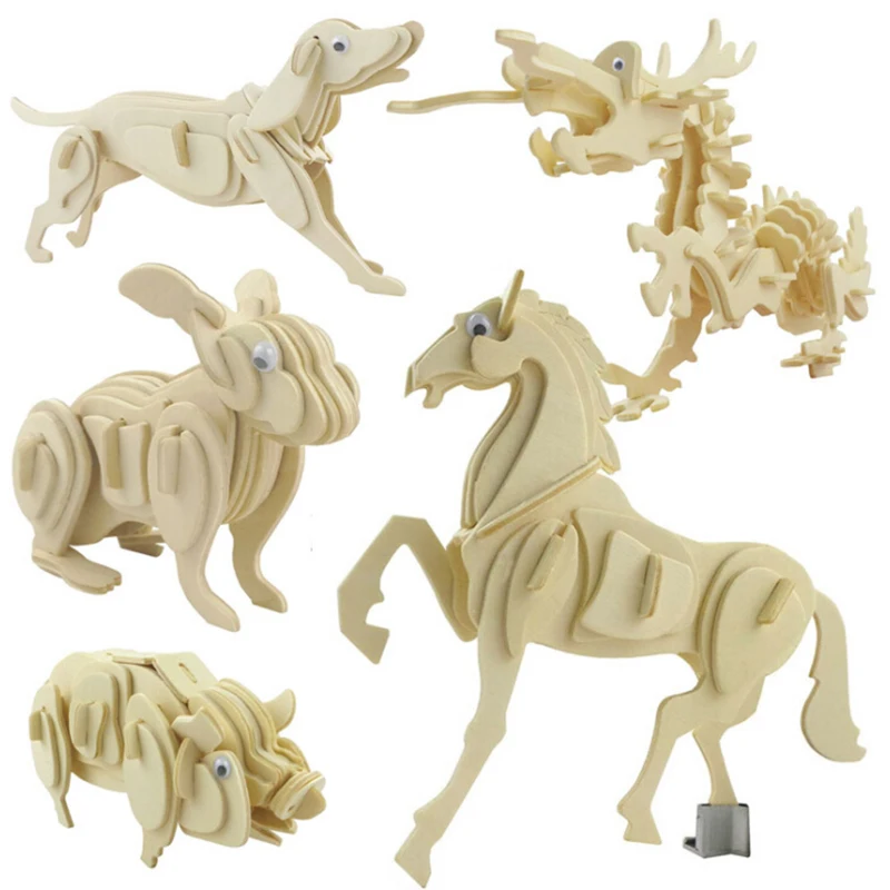 * 3D имитация 12 зодиака маленькие животные мини деревянные головоломки