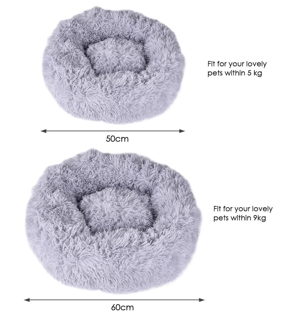 1. Пушистый и мягкий длинный плюш, без ворса и шелковистый гладкий, легко доставляет приятные на ощупь ощущения и сохраняет ваших питомцев в тепле в холодные зимние дни. 2. Нескользящие частицы на дне могут увеличить трение между кроватью и полом, не будут перемещаться При стабильном размещении. 3. Машинная стирка и ручная стирка, Бесплатная Чистка в соответствии с вашими требованиями, без усилий для поддержания, энергосбережение. 4. Доступны два варианта размеров, диаметр от 50 см до 60 см, широко подходит для кошек или собак весом менее 9 кг. 5. Идеальный подарок, чтобы показать вашу заботу и любовь к вашим маленьким пушистым друзьям, обеспечивая им хороший и милый сон.