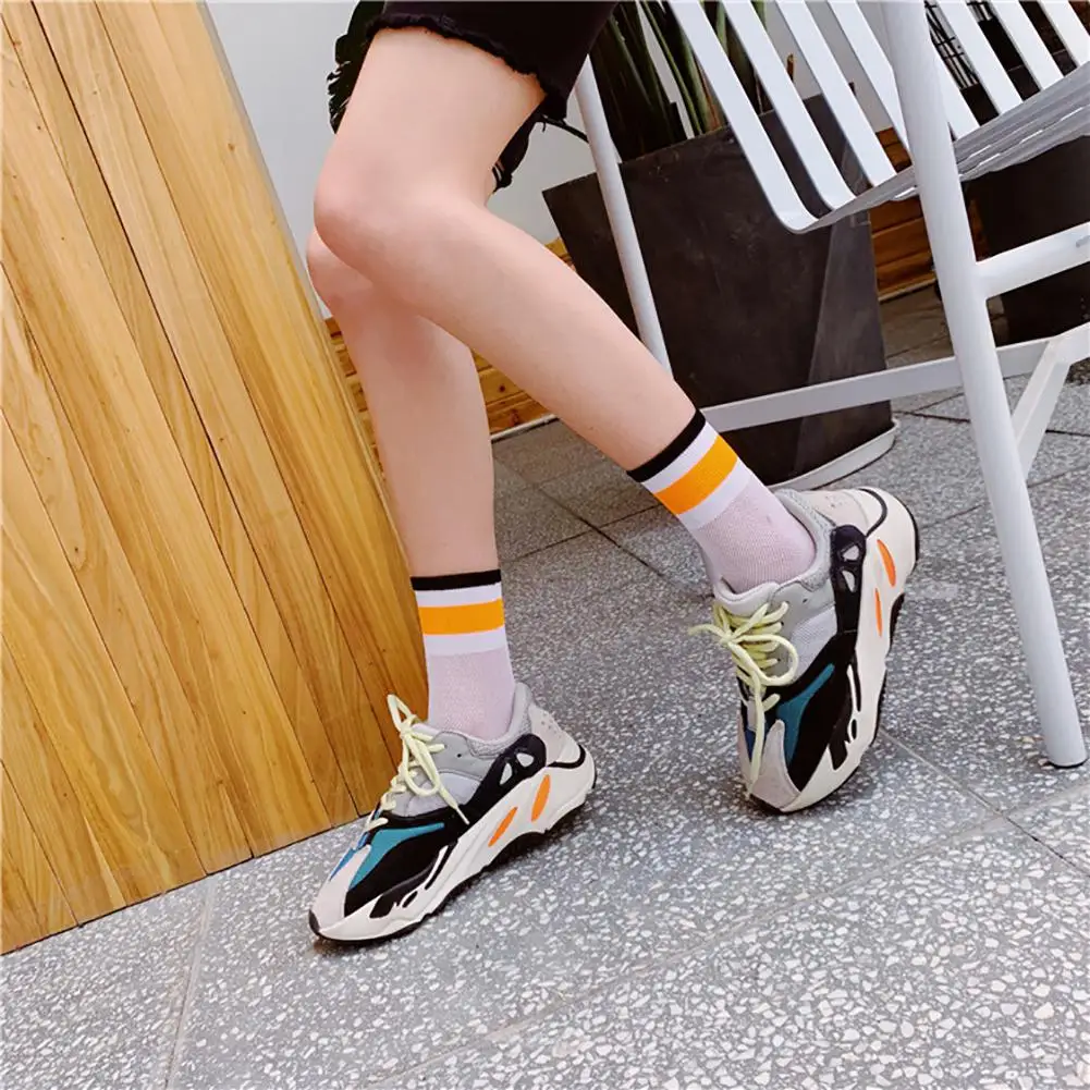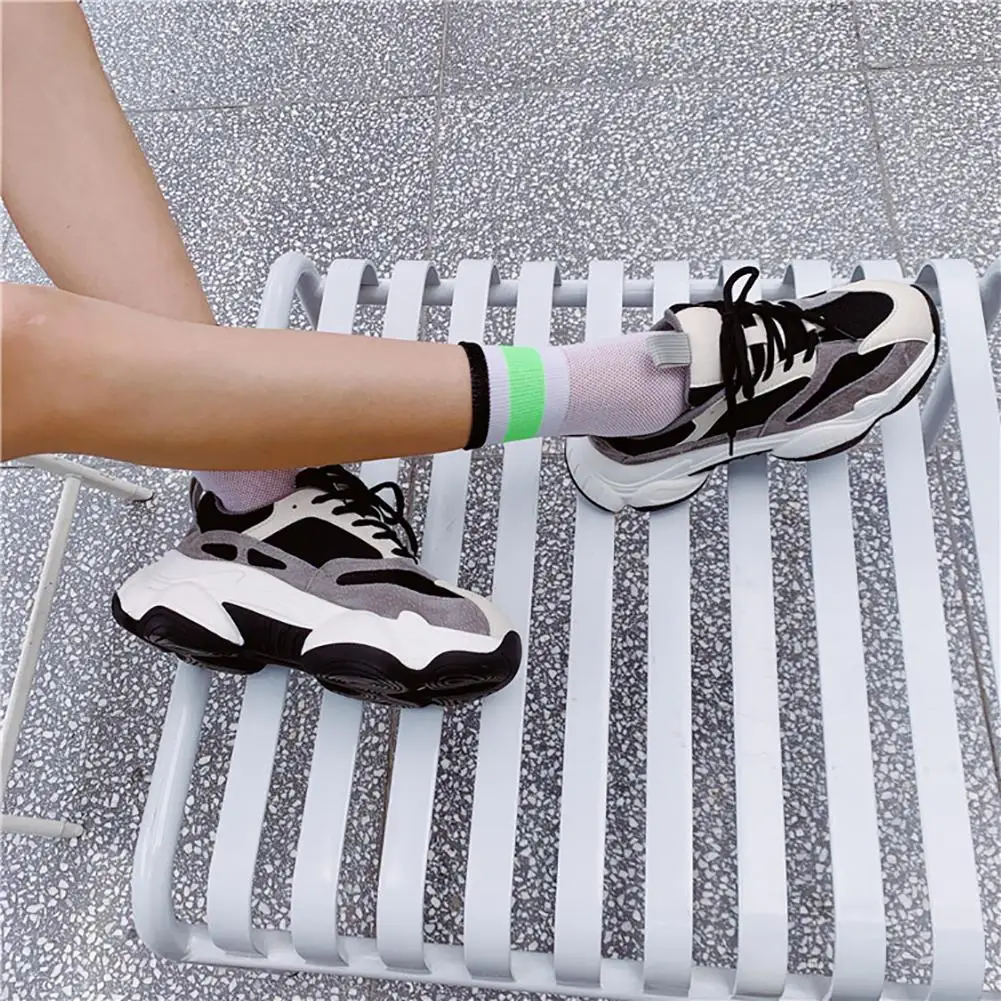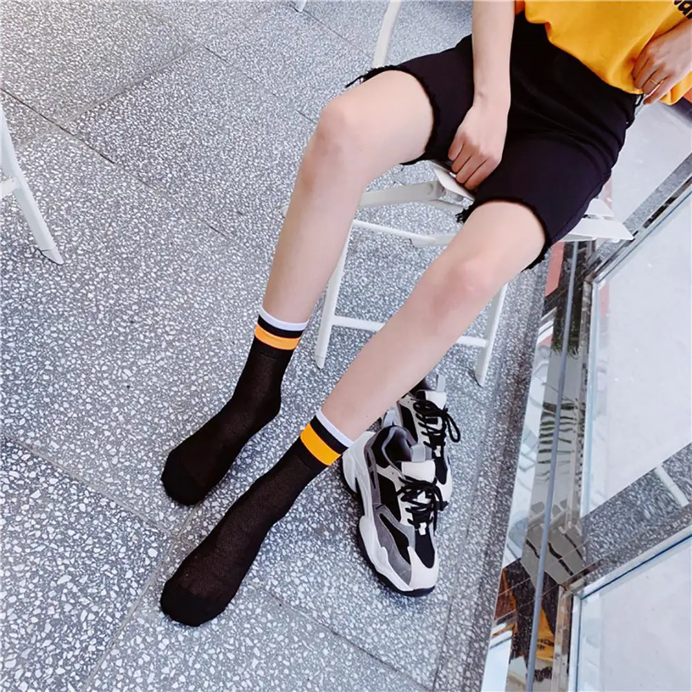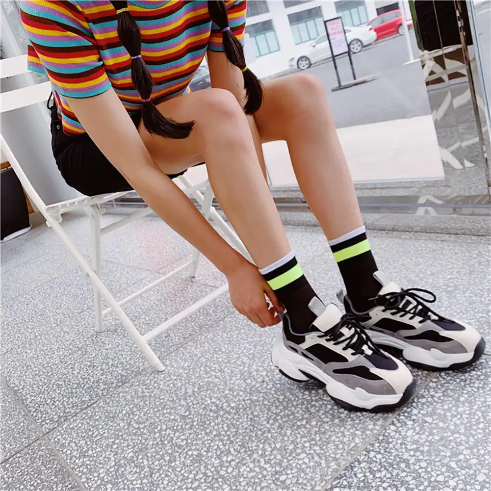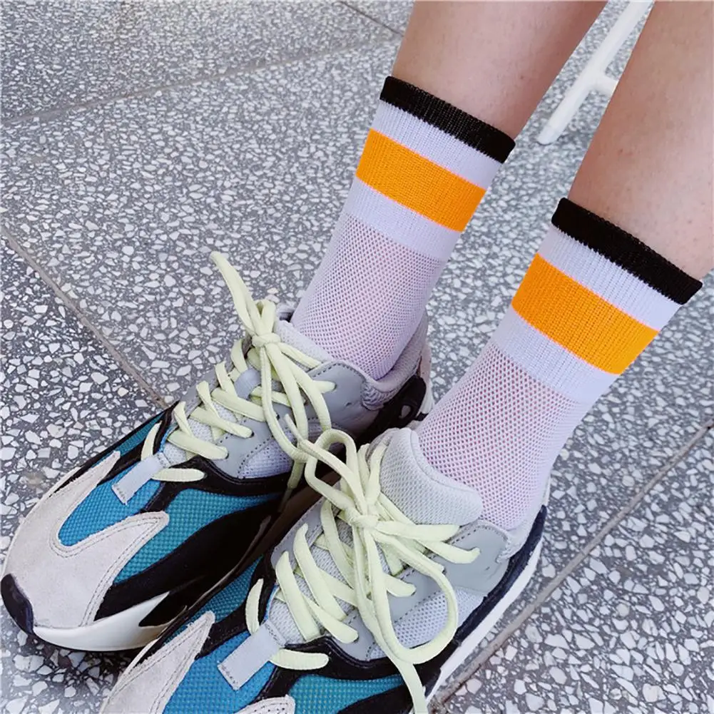 DSstyles/1 пара, летние тонкие сетчатые чулки, флуоресцентные цветные горизонтальные носки в сетку, дышащие и дезодорирующие чулки