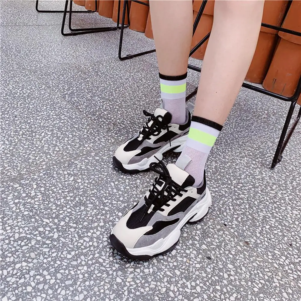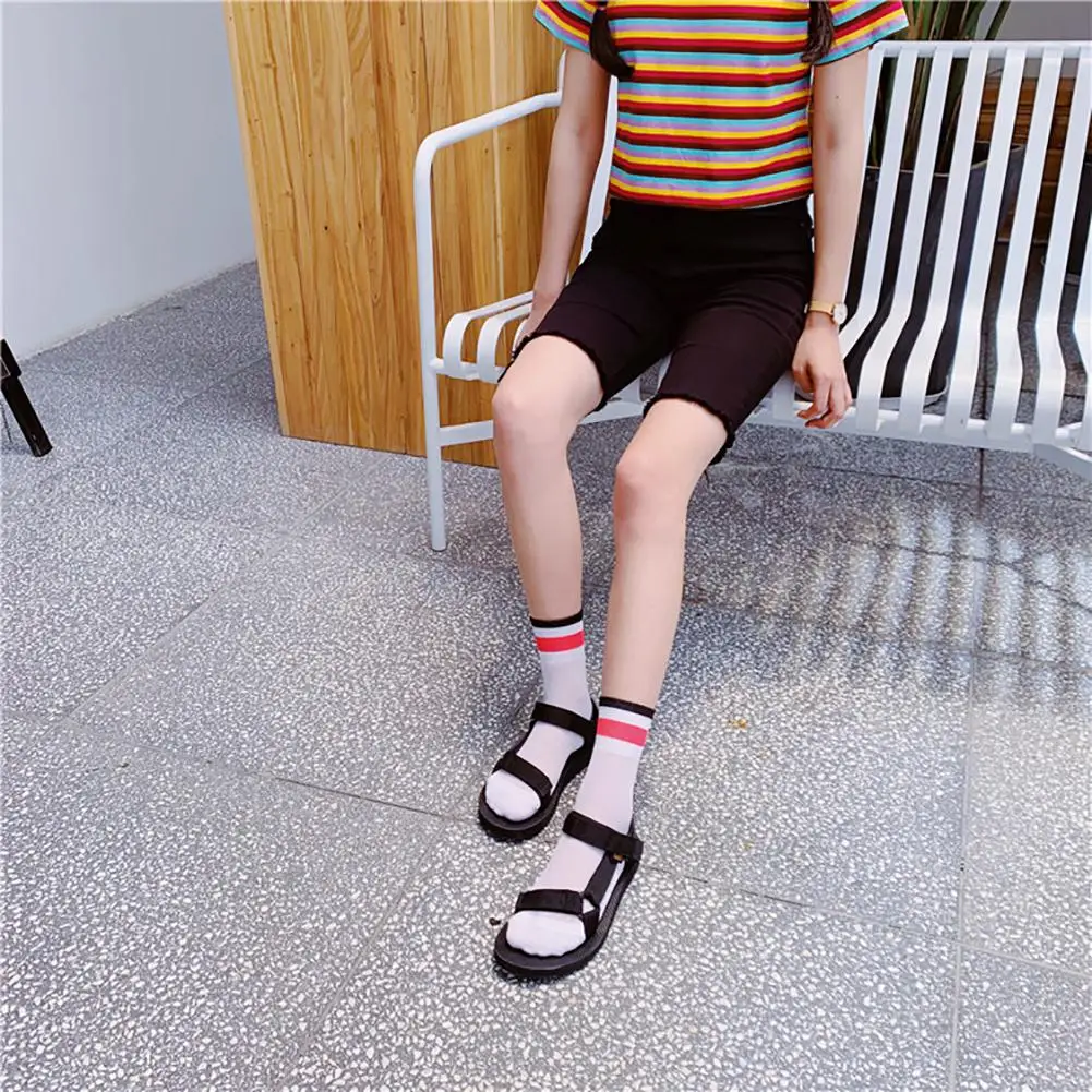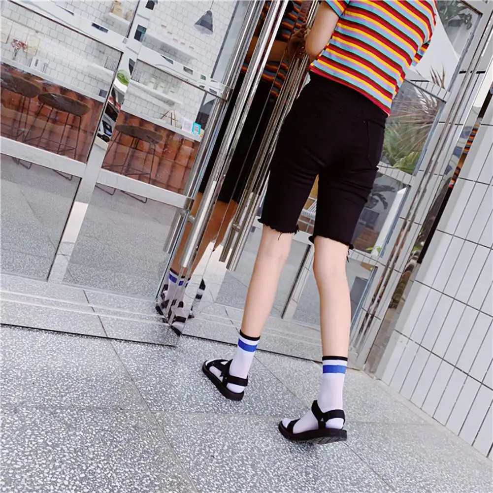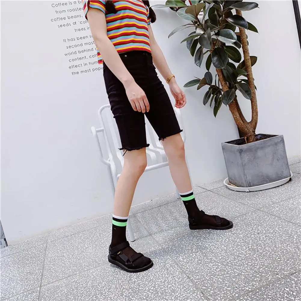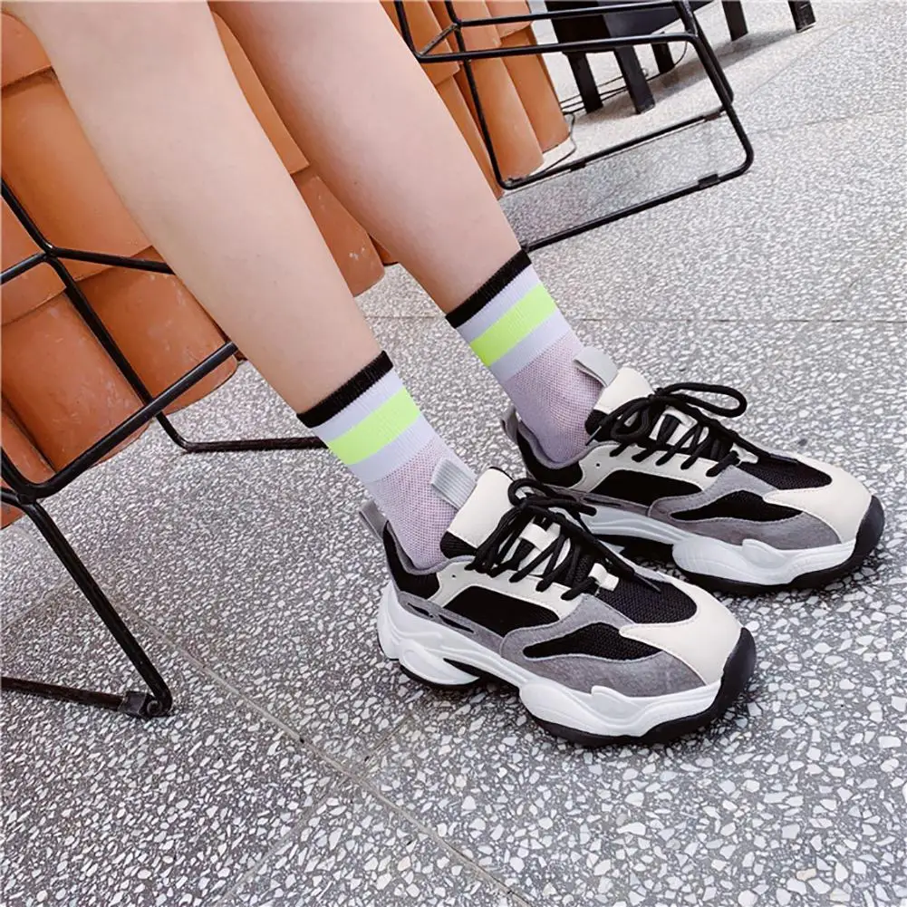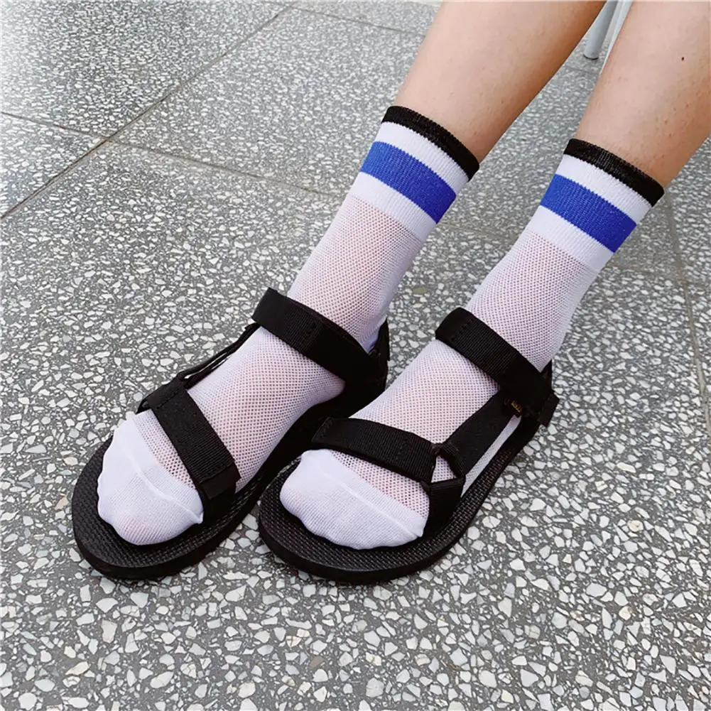 DSstyles/1 пара, летние тонкие сетчатые чулки, флуоресцентные цветные горизонтальные носки в сетку, дышащие и дезодорирующие чулки