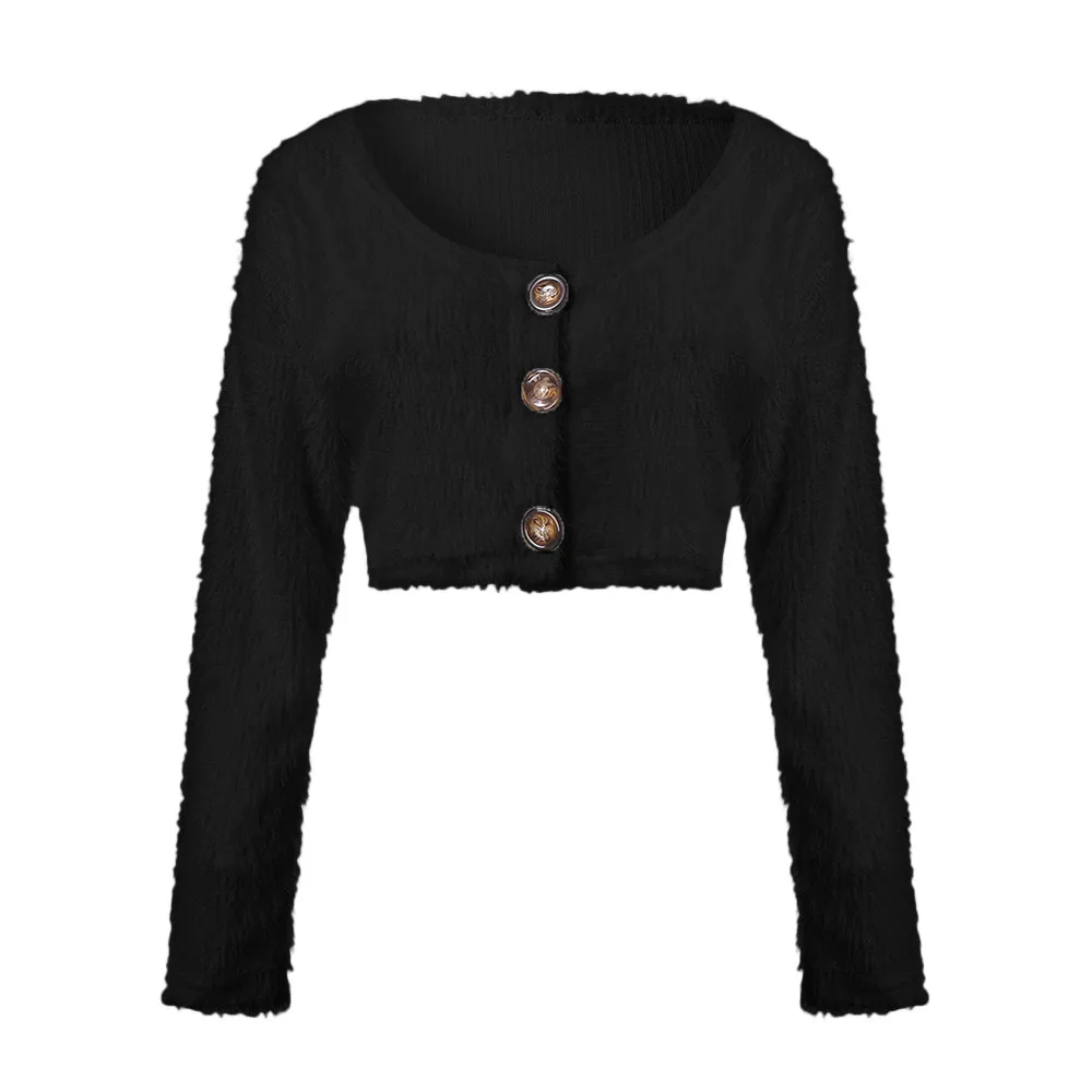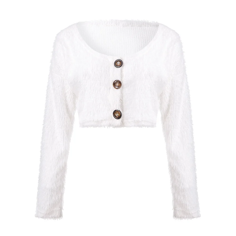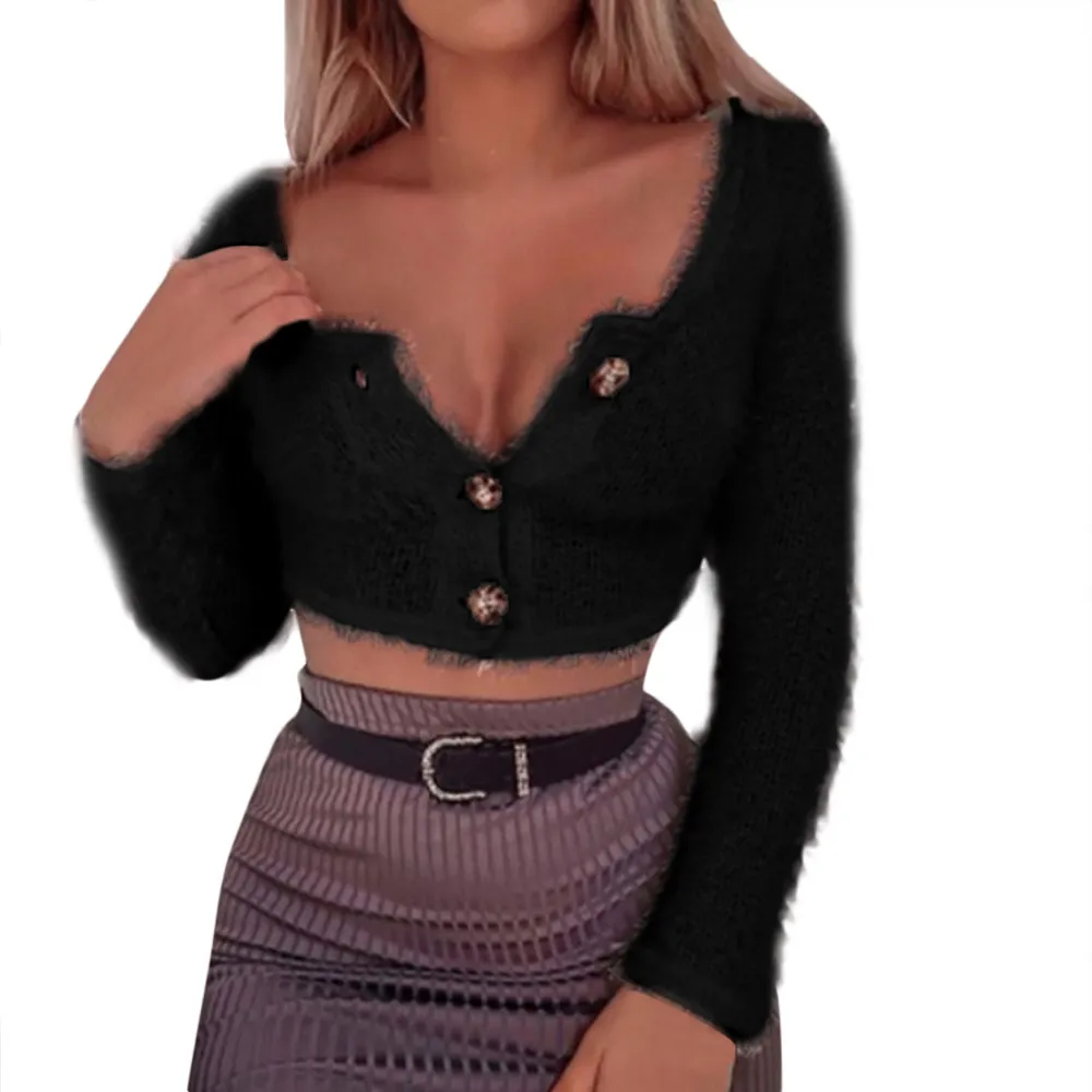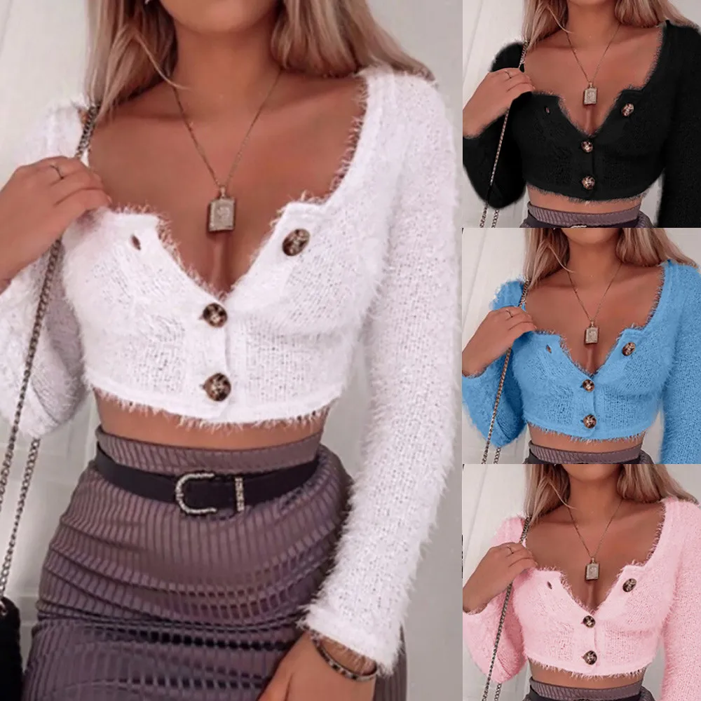 Женское модное дизайнерское пальто-свитер с длинным рукавом на пуговицах и глубоким вырезом