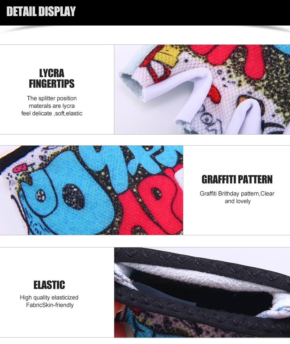 1. Эластичная мягкая ткань, приятная для кожи. 2. Добавьте силикон в ладонь для противоскользящей и лучшей ручка. (только день рождения) 3. Привлекательный дизайн и минимальная подкладка на ладони для более легкого захвата, все еще обеспечивают защиту. 4. Дети могут наслаждаться всеми видами спорта, такими как езда на велосипедная педаль и велосипеды баланса, скейтборды, скутеры, роликовые коньки, роликовые лезвия, балансировочные доски, гимнастика и т. Д.