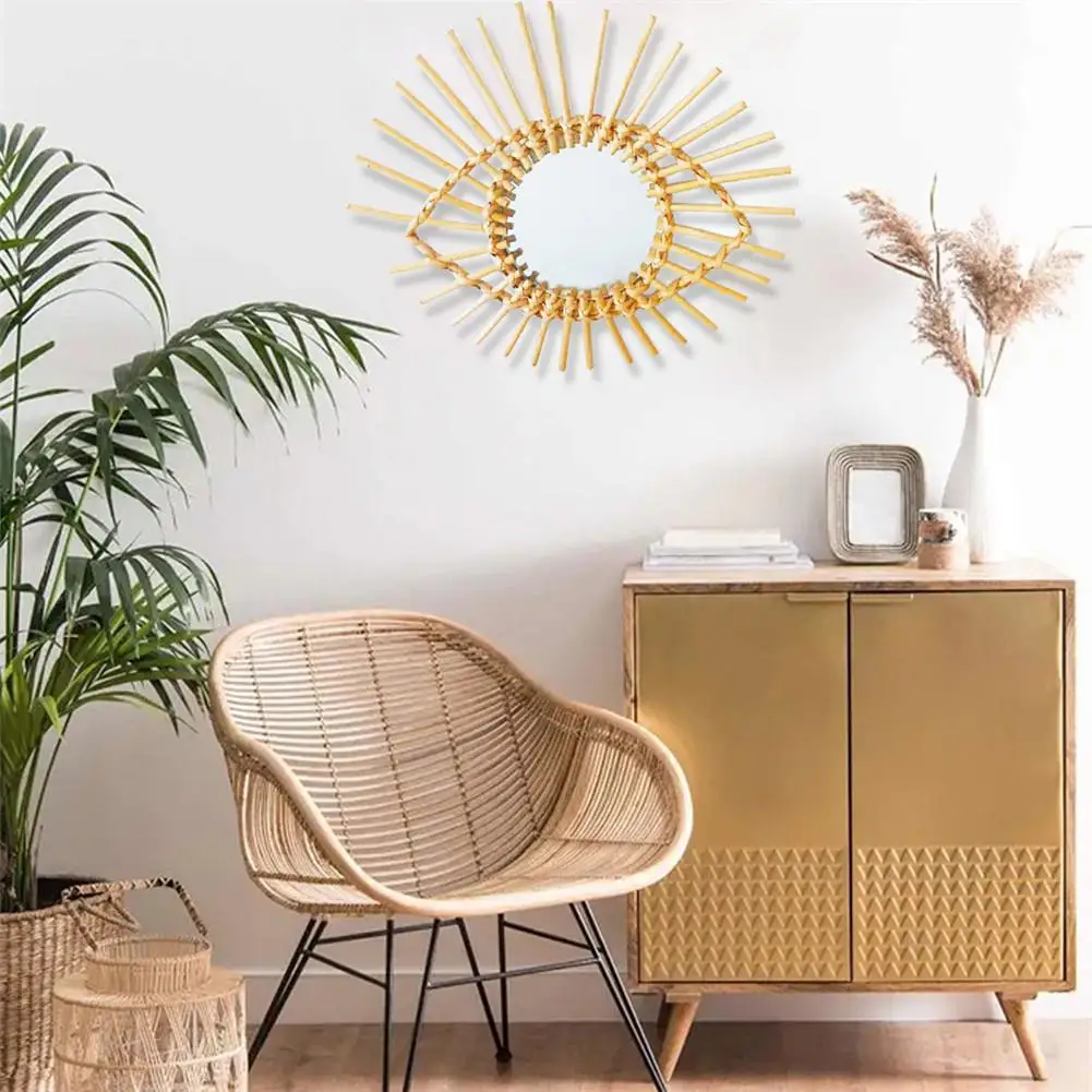 2. Материал: серебряное зеркало, четкое и естественное изображение, не легко окисляется, не легко ржавеет, ротанг дизайн, безвкусный, сильный, не легко повредить.Название: Скандинавское плетеное настенное зеркало