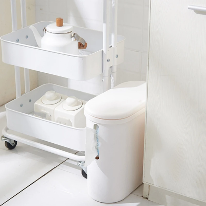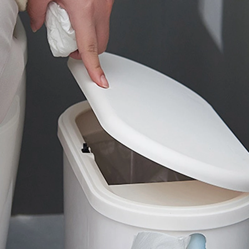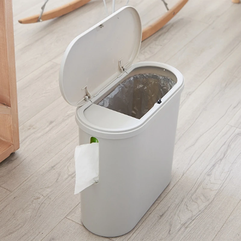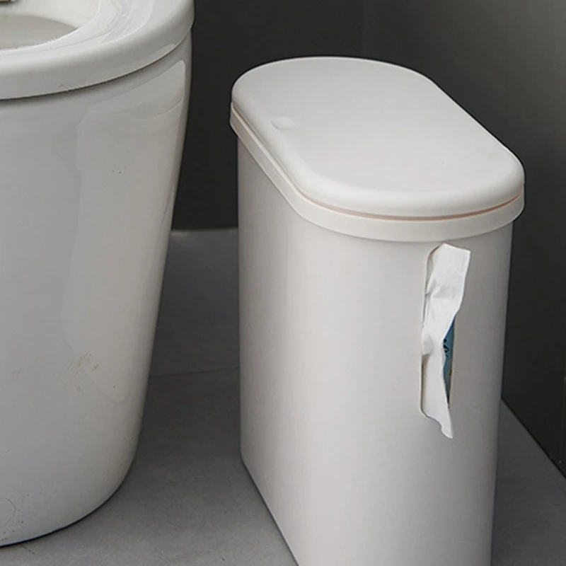 Узкая конструкция для лучшего использования пространства и устранения пустых углов, портативный дизайн с удобными ручками для легкого опорожнения и очистки мусорного бака мусорная корзина изготовлена из нового пластика (ABS + PP), нетоксичный, безвкусный и прочный.