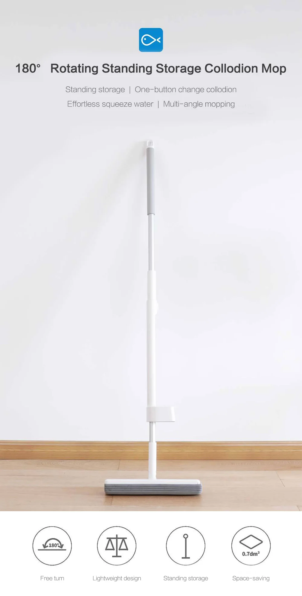 Швабра находится в хранении, а вертикальный снаряд составляет всего 0,7dm, что эквивалентно области бутылки с водой, которая может быть размещена на любом уголке. После того, как швабра промыта, ее можно поместить вертикально и естественным образом высушить, чтобы избежать вторичного загрязнения коллодионной головки.