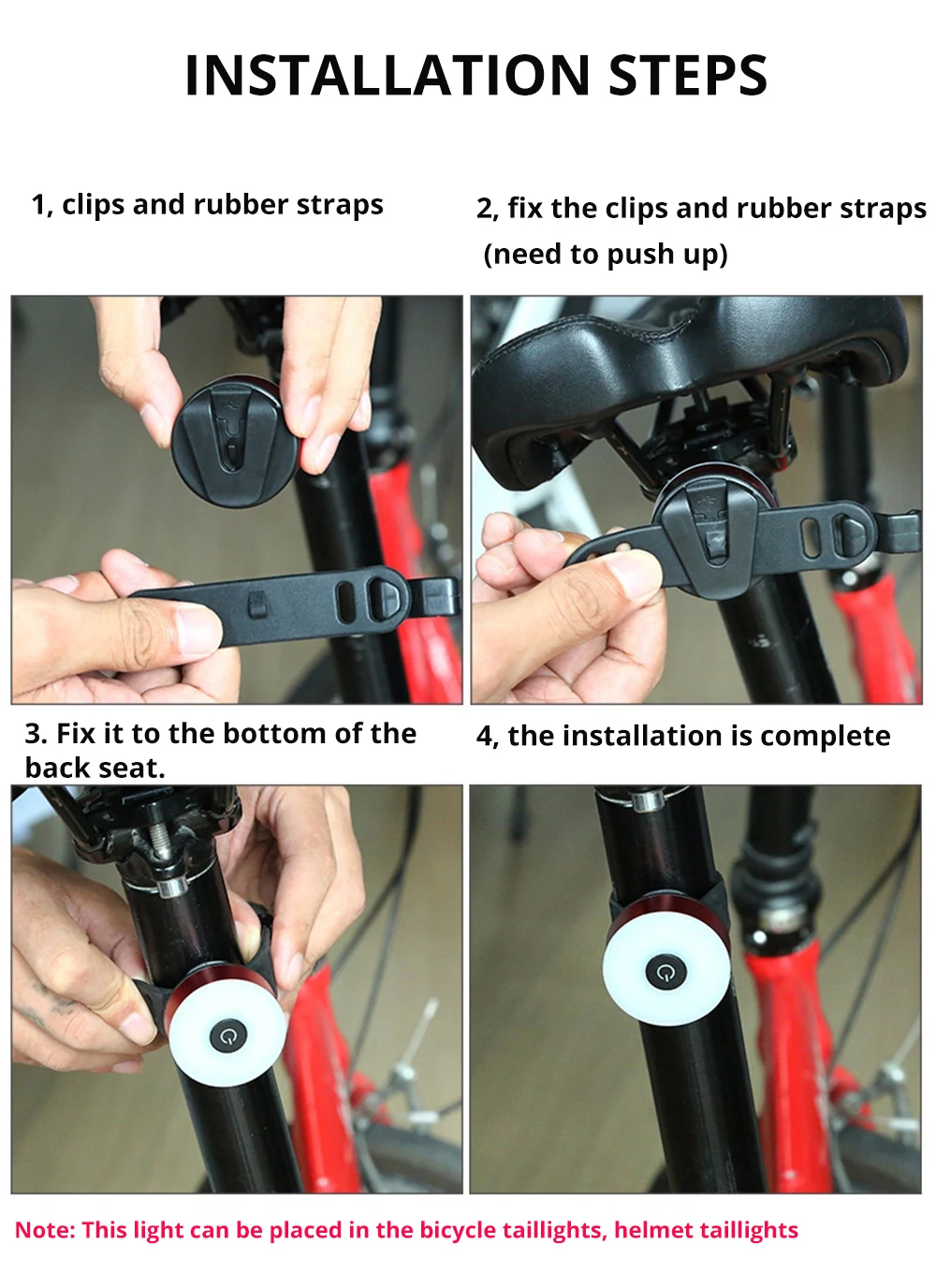 Это компактный, легкий, легкий в установке сигнальный фонарь, который может быть установлен на задней части велосипеда, шлема, рюкзака и т. Д. Быстрая зарядка через Usb, полная мощность, срок службы батареи до 32 часов, что обеспечивает безопасность для ночного путешествия.