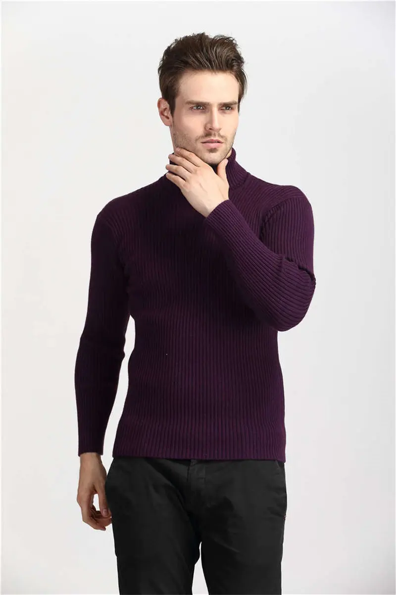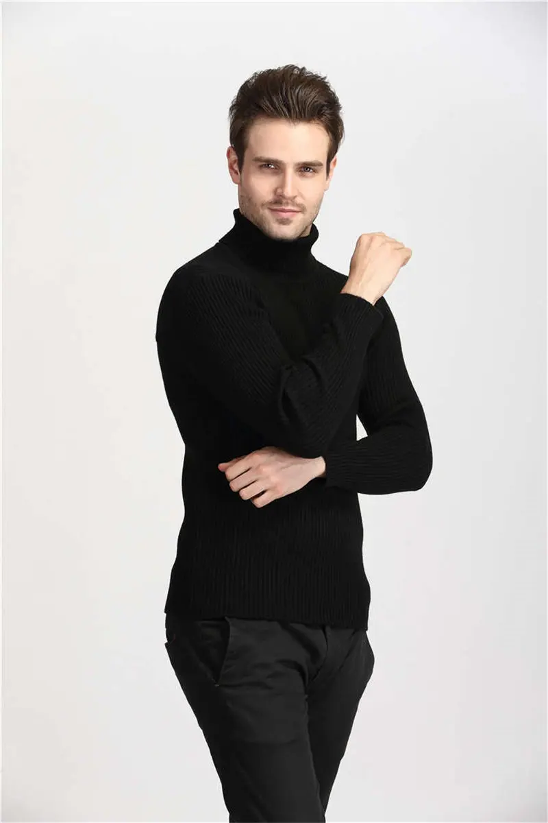 Зимний толстый теплый кашемировый мужской свитер с высоким воротом, мужские свитера, приталенный пуловер, Мужская классическая шерстяная вязаная одежда для мужчин J661