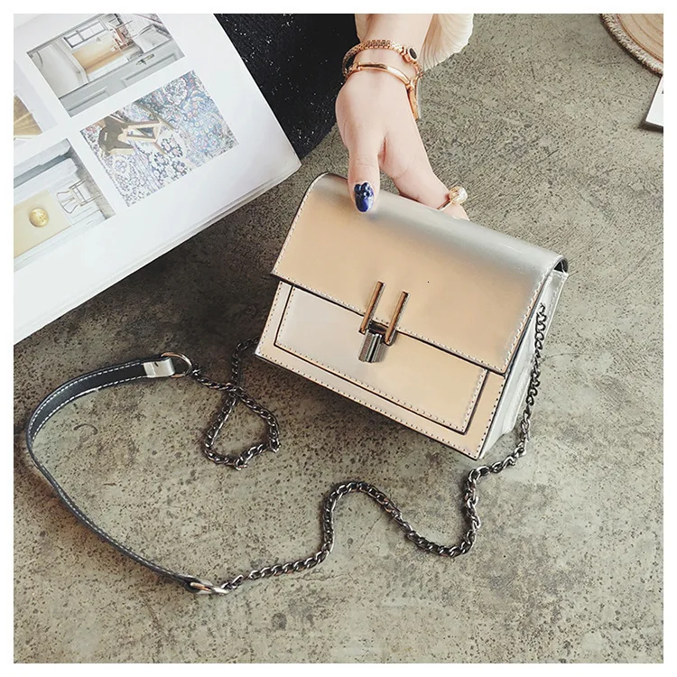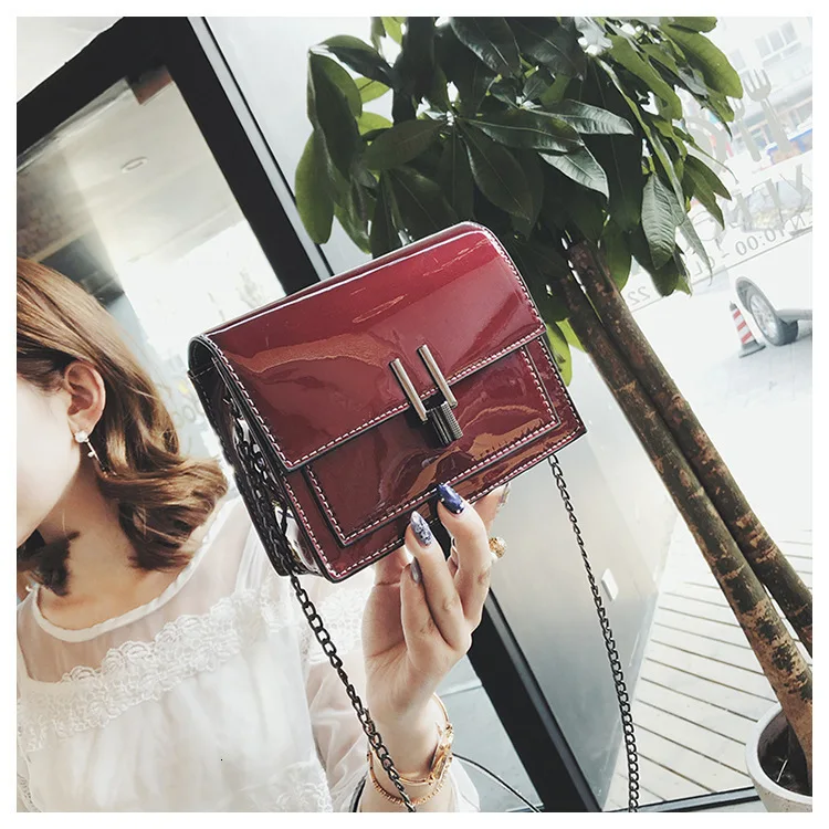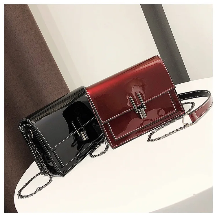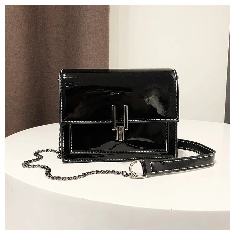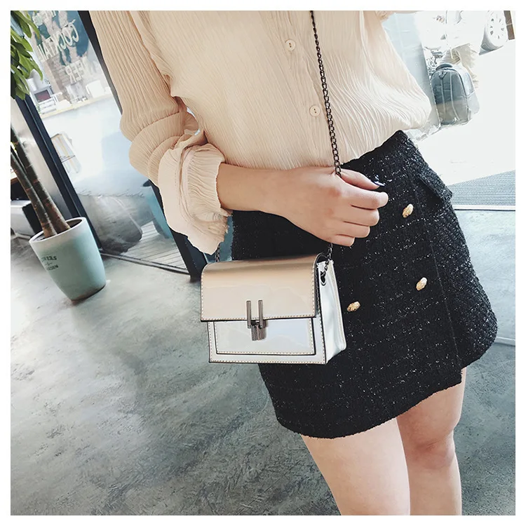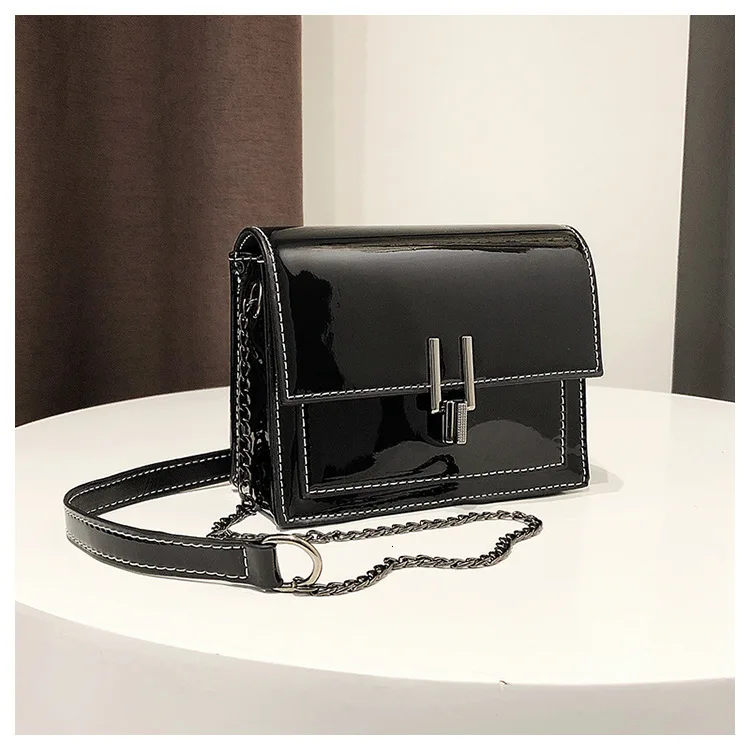 Модная лакированная кожаная зеркальная маленькая квадратная сумка, сумка на одно плечо, повседневная женская сумка с цепочками и клапаном