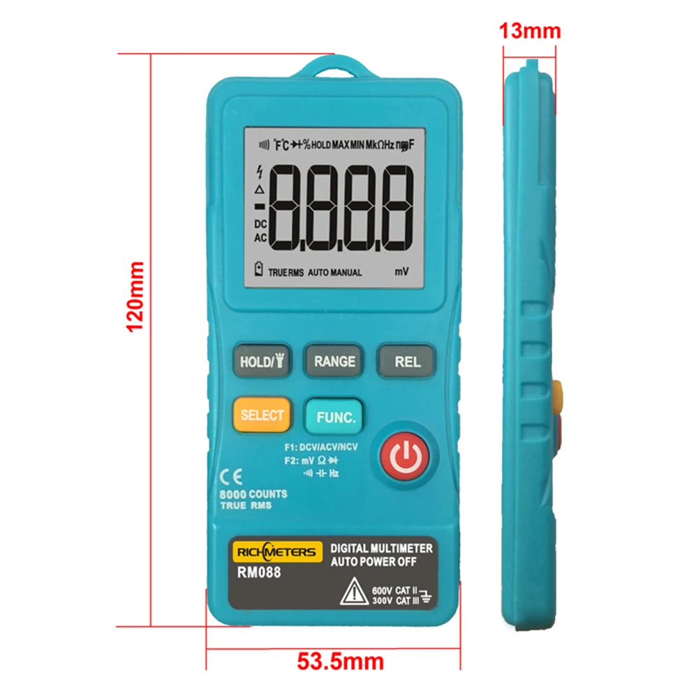 Это цифровой мультиметр с питанием от батареи, автоматическим диапазоном, истинным RMS с ЖК-дисплеем 8000 отсчетов. Это практичный инструмент для электриков, любителей и общего домашнего использования.