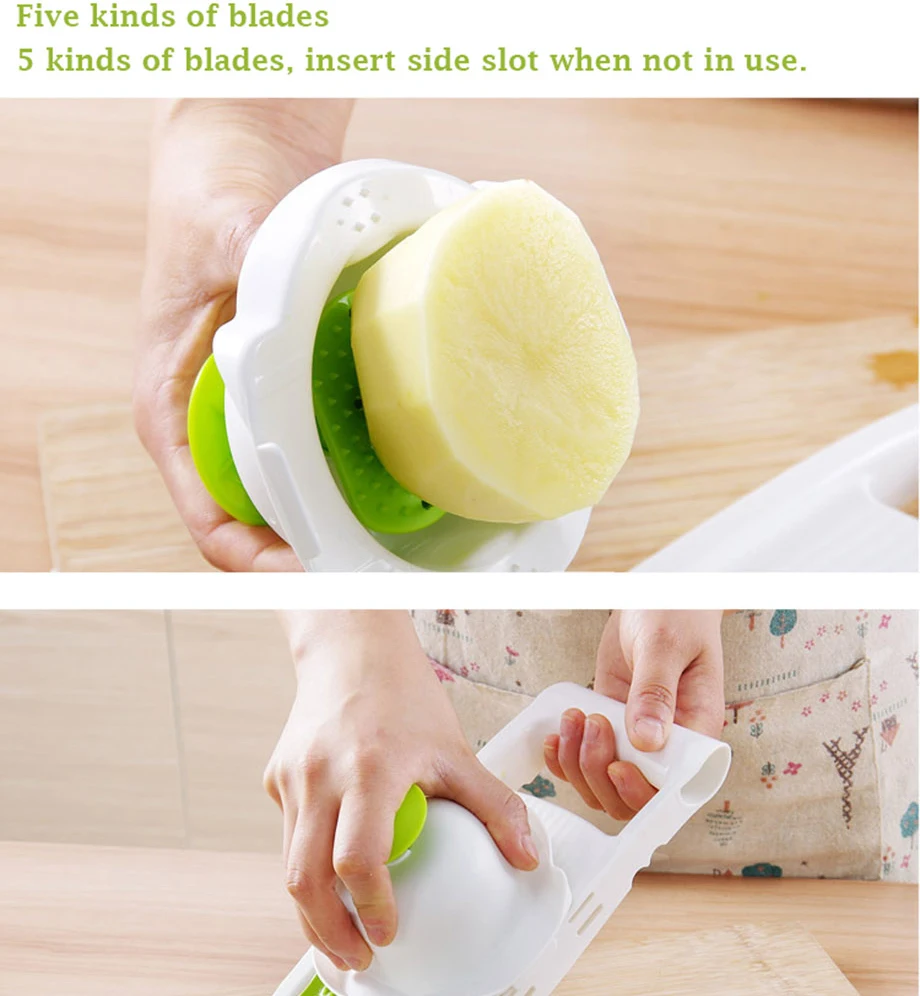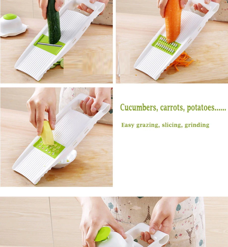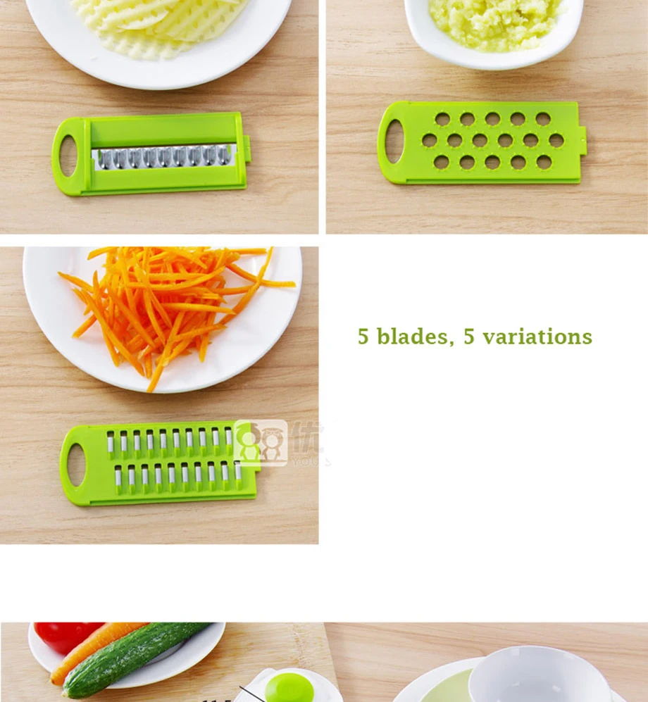 Основные Особенности: 1 Этот ручной слайсер предлагает все функциональные возможности нескольких приборов с 4 взаимозаменяемыми лезвиями 2. Эти лезвия можно разрезать все виды овощей, терка для сыра, нарезка картофеля и резка фруктов 3. Быстро и без усилий сокращает время приготовления пищи пополам, очень прост в использовании 4 основание держателя для пищевых контейнеров может улавливать все ваши ломтики, кусочки и порезы Название: кухонный практичный Многофункциональный режущий прибор 5 комплектов Пять видов лезвий, нарезанные, измельченные и наземные, могут быть легко обработаны, что является хорошим помощником для вашей кухонной жизни.