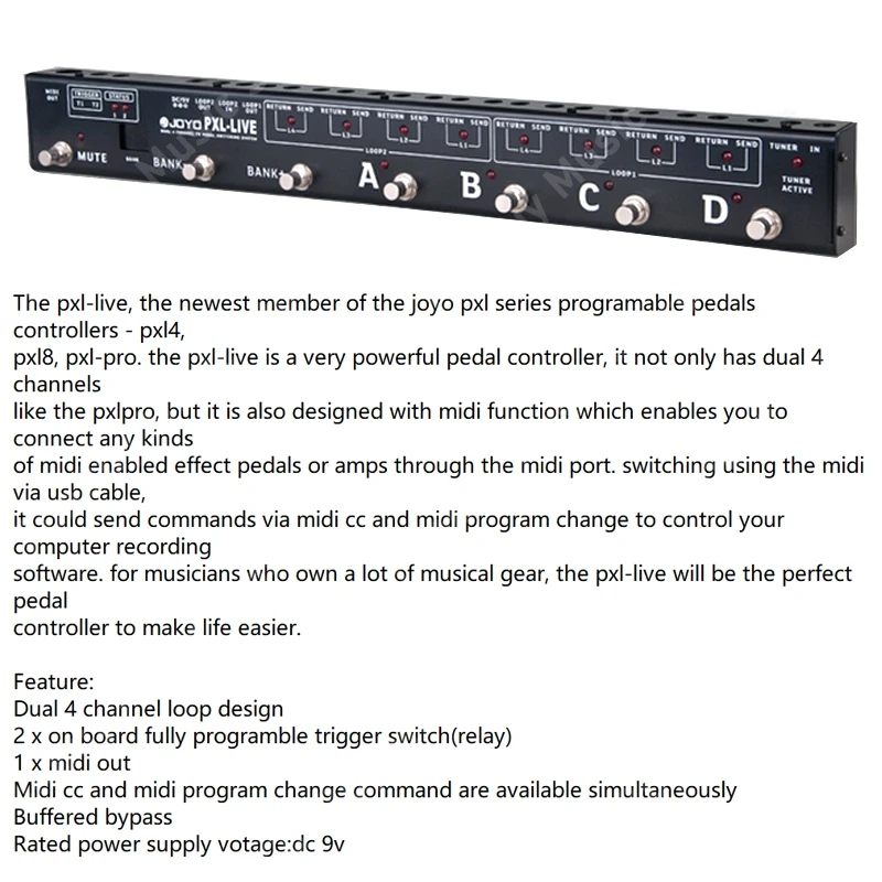 JOYO PXL Live программируемый Лупер Управление станция Педальный переключатель Dual Core 4 канала с миди из буферным обходом черный