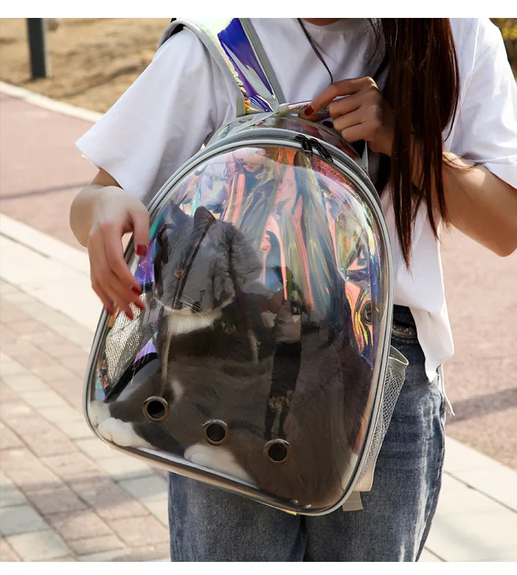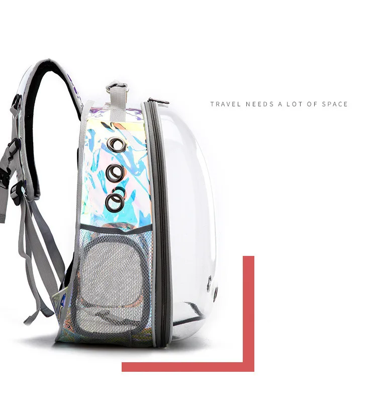 2. Прозрачный дизайн, позволит вашему питомцу видеть солнечный свет и пейзажи со всего мира. Несколько вентиляционных отверстий на боковой части рюкзака обеспечивают достаточную циркуляцию воздуха, позволяют вашему питомцу дышать комфортно.