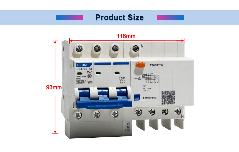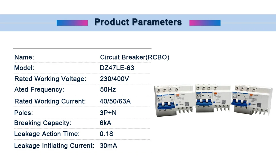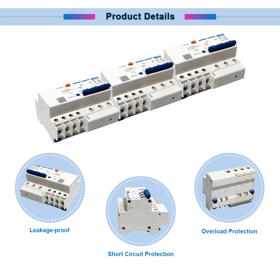 DZ47LE-63 3P+N Leakage-proof Circuit Breaker RCBO Overcurrent Protection 40/50/63A Residual Current Operated Circuit Breaker
