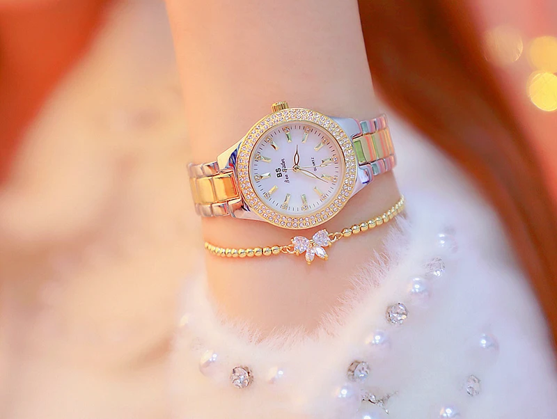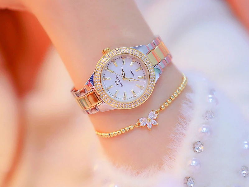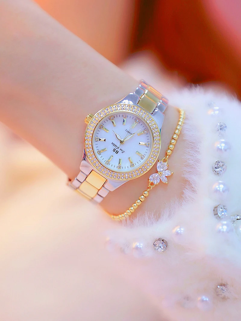 Стразы Золотые часы для женщин 2019 Роскошные повседневные наручные часы женские серебристые женские часы из нержавеющей стали, наручные часы