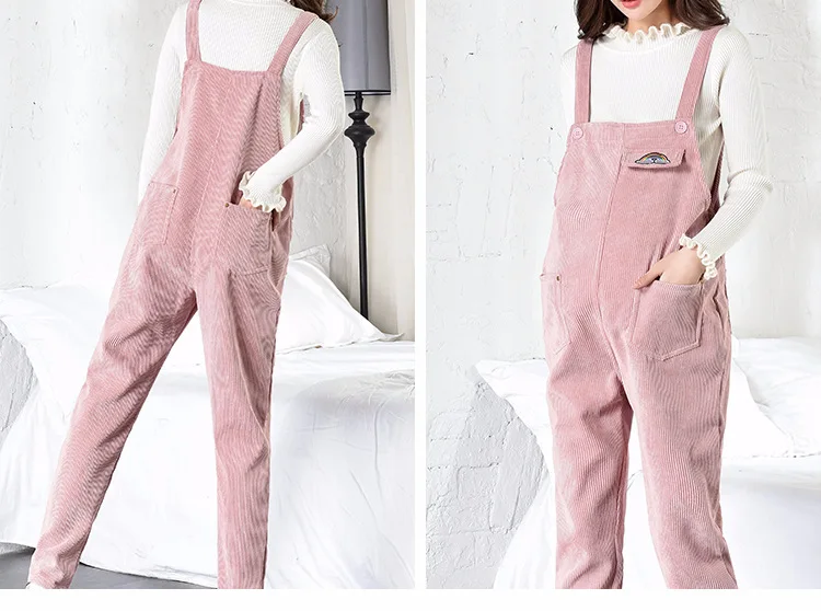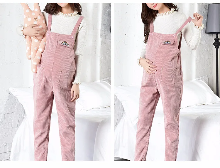 Весна-Осень вельветовый комбинезон для беременных женщин повседневные Комбинезоны Roupa Gestante Брюки для беременных свободное платье