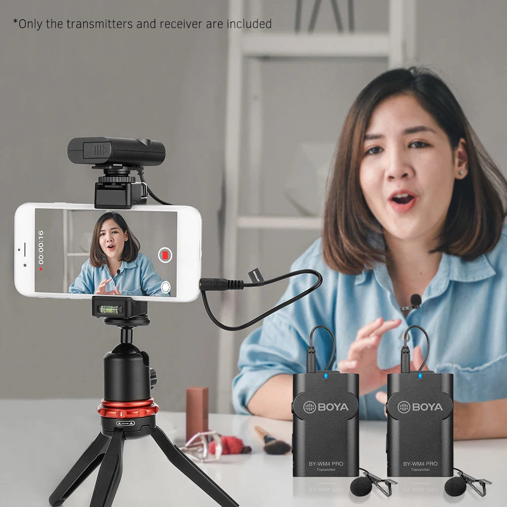 BOYA BY-WM4 Pro K2 портативная 2,4G Беспроводная микрофонная система (два передатчика + один приемник) с микрофоном для цифровой зеркальной камеры