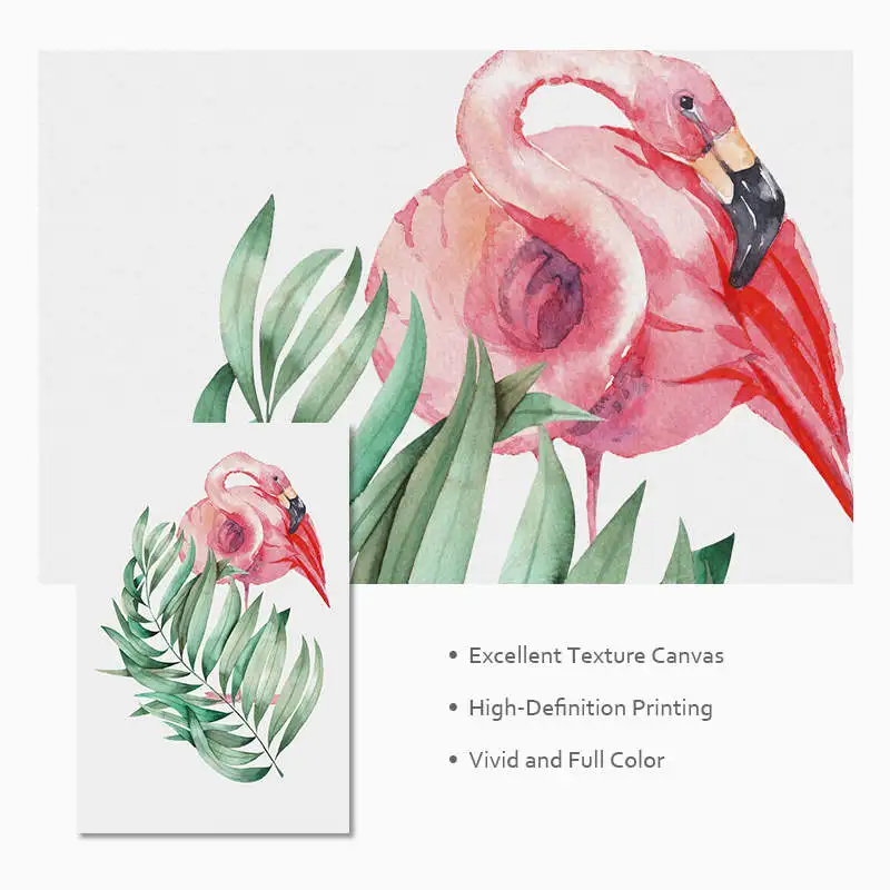 Зеленые растения лист и фламинго постер для детской комнаты принты настенная живопись садик живопись, декоративная картина для маленьких девочек Декор для гостиной