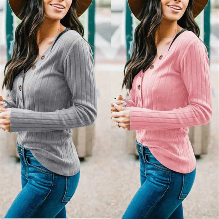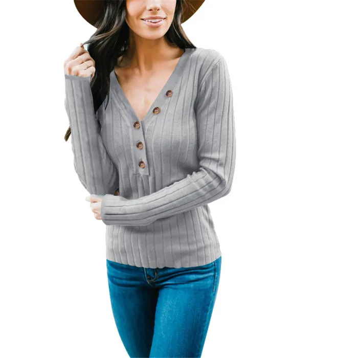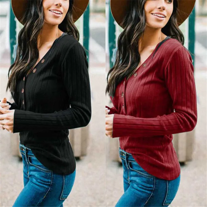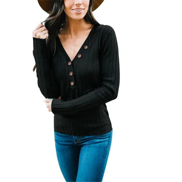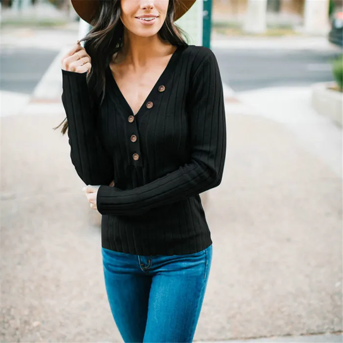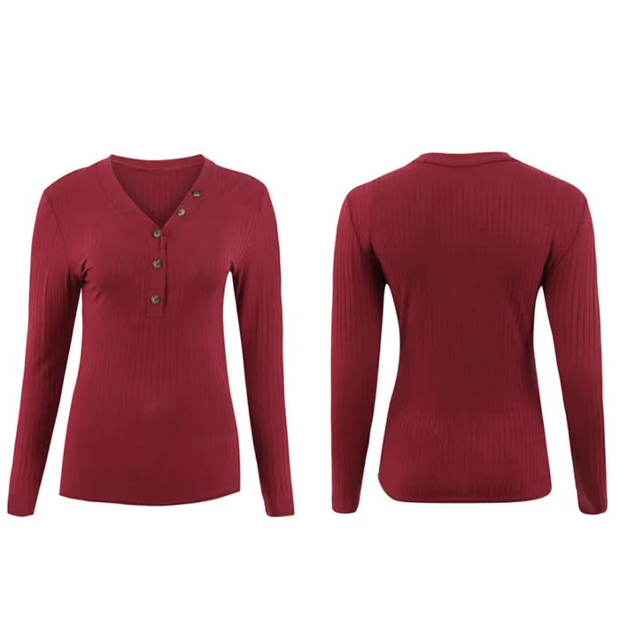 Женская рубашка с глубоким v-образным вырезом и длинным рукавом, приталенные топы на пуговицах, однотонная блузка JS26