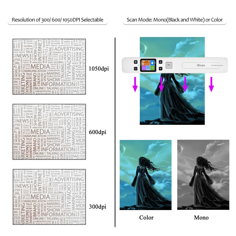 Портативный сканер позволяет быстро и легко получить цифровые копии ваших важных документов, фотографий, художественных работ, книг, квитанций и многого другого.
