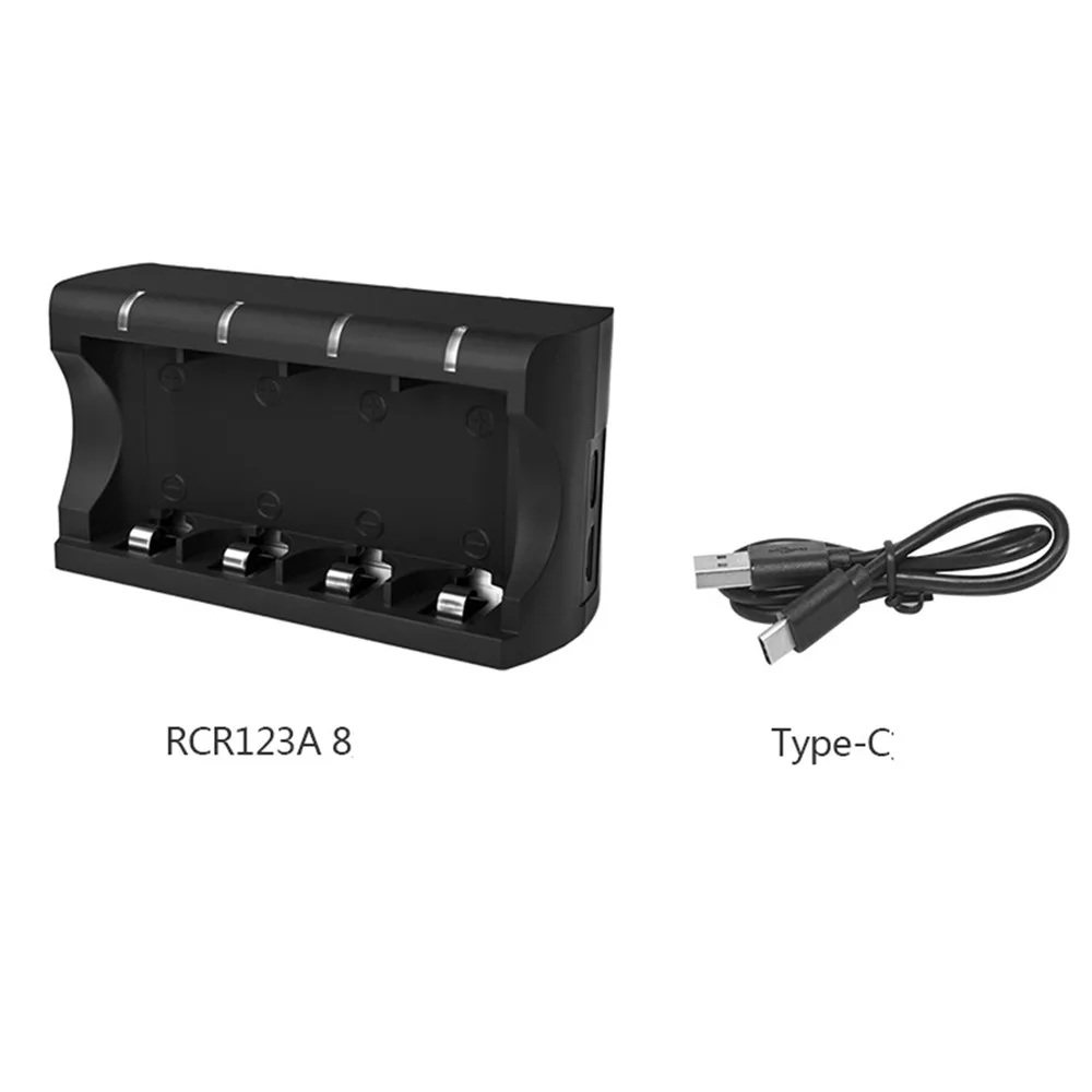RCR123A перезаряжаемая литий-ионная батарея 8 слотов Смарт зарядное устройство Type-C микро Зарядная Станция Адаптер 16340 16350 16360 3,7 V Arlo