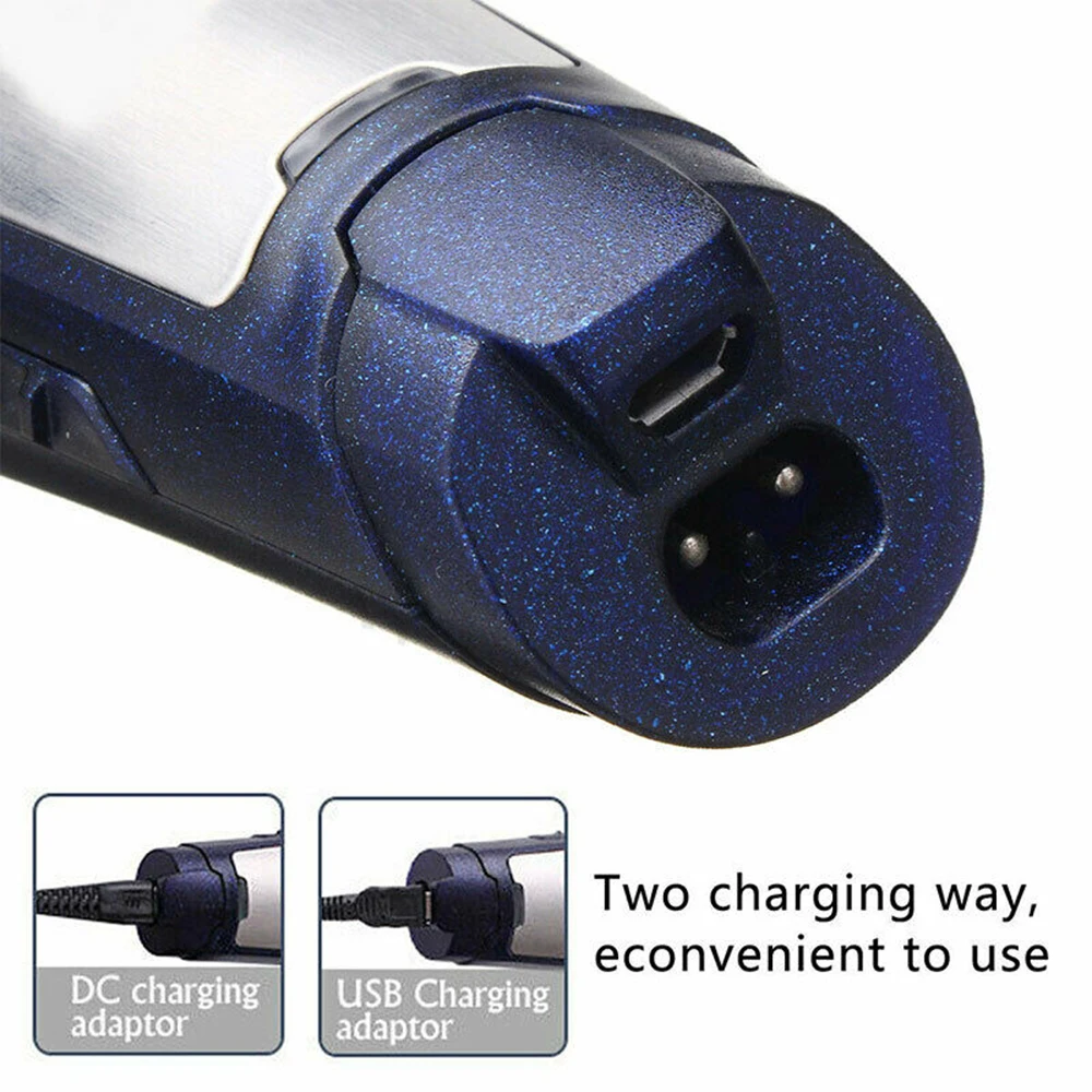 Параметры: Название: электрический триммер для волос USB Напряжение: 110 ~ 240 В/50 ~ 60 Гц Время зарядки: 8 часов Время работы: Approx.60mins Размер: 7x1,77 дюймов (18x4,5 см) Вес: 138 г Особенности: -Портативный, многофункциональный (используется для парикмахерских, бритья, удаления волос,). -Простой, легкий для различных стилей, использовать для возраста. -Защитная режущая головка, септическая Чистка мягкий и мягкий износ и крой. -Низкий уровень шума, во время работы, очень тонкий. -Умный структурный дизайн и технология. -Может обрезать волосы длиной около 0,01 мм, почти лысый. Примечание: usb-кабель не входит в комплект