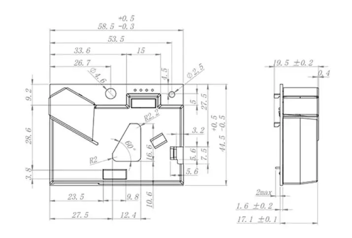 Размеры: 59,5 × 44,5 × 20 мм