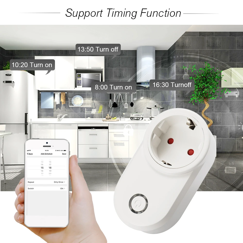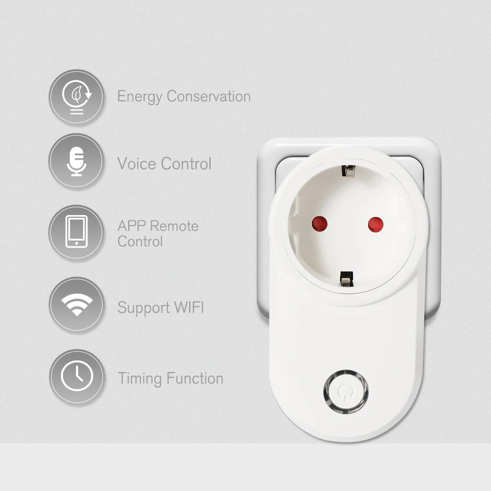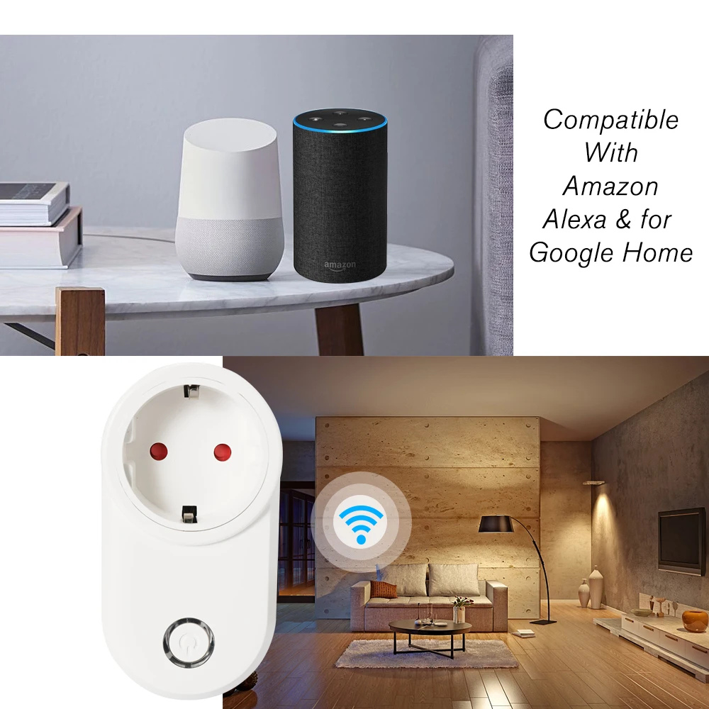 Это умная штепсельная вилка WiFi, которая поддерживает таймер для включения и выключения розетки, голосовое управление Совместимо с Amazon Alexa и Google Home IFTTT, удаленное управление устройствами и приложением для телефона, установка проста, безопасно и быстро, вы можете установить таймеры для включения/выключения вашей электроники, нажав на ваш смартфон, Что делает ваш дом умнее. Супер дизайн для вас!