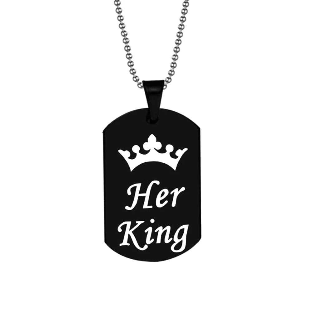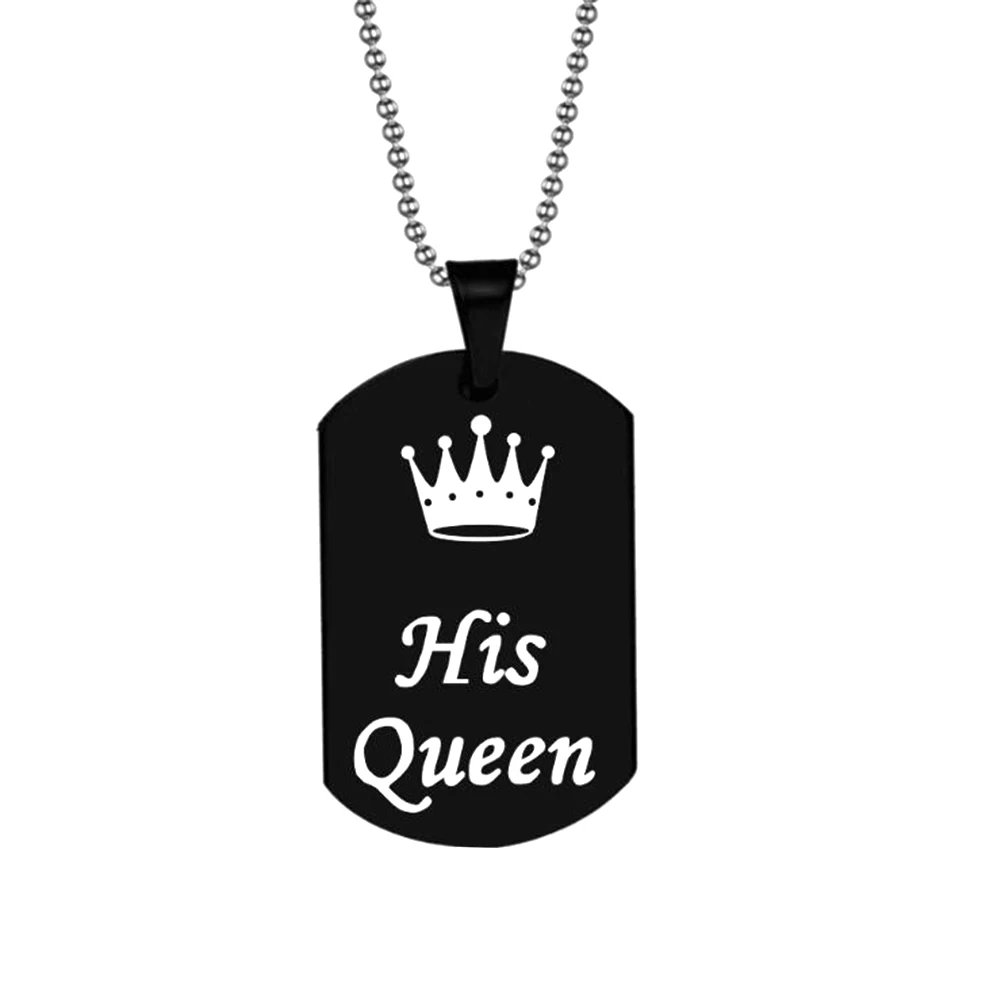 Пара подвесное ожерелье уникальный Корона ее король его королева печатная бирка кулон пара парные ожерелье ювелирные изделия подарок