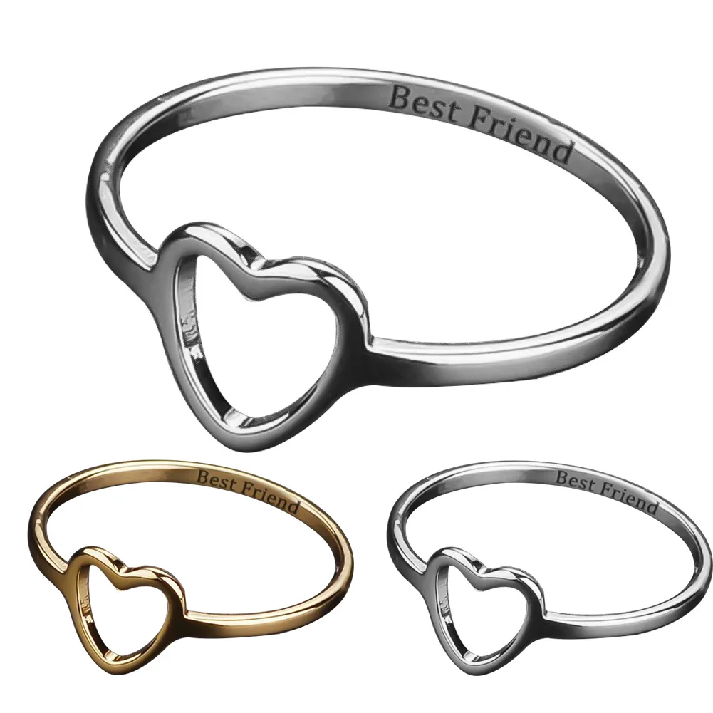 Простое женское кольцо из нержавеющей стали, кольцо для лучшего друга, резное полое сердце, кольцо на палец, кольцо дружбы, ювелирное изделие, подарок, женские аксессуары