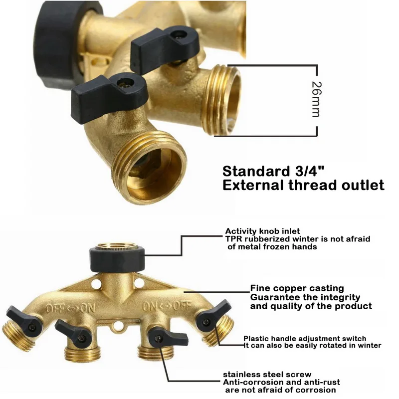 4-полосная латунь разветвитель для крана адаптер розетки 3/4 ''шланг трубы шланг для коллектора для сада сплиттер оросительный соединитель для полива Системы D110