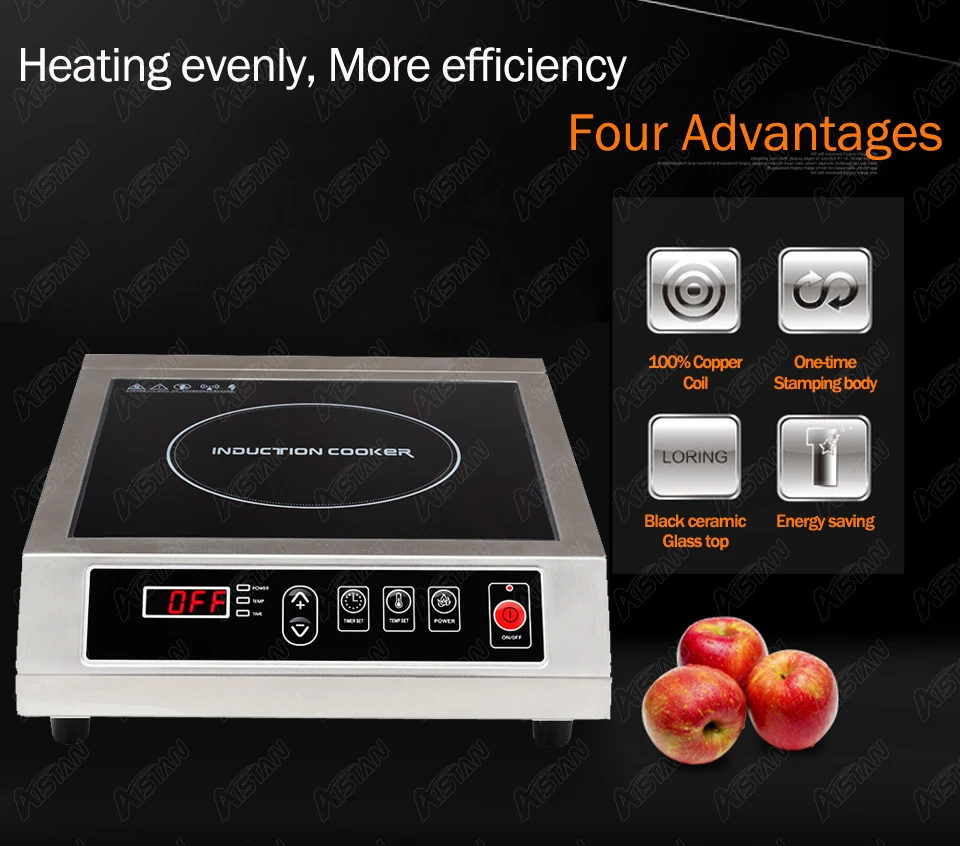 Уровни мощности: вы можете быстро выбрать подходящий уровень от 400 Вт до 3500 Вт/5000 Вт. 3500 Вт/5000 Вт Мощность для удовлетворения ваших различных потребностей в приготовлении пищи; Варить на медленном огне, варить, варить, сеять, закатывать, парить, медленно варить и гриль с легкостью