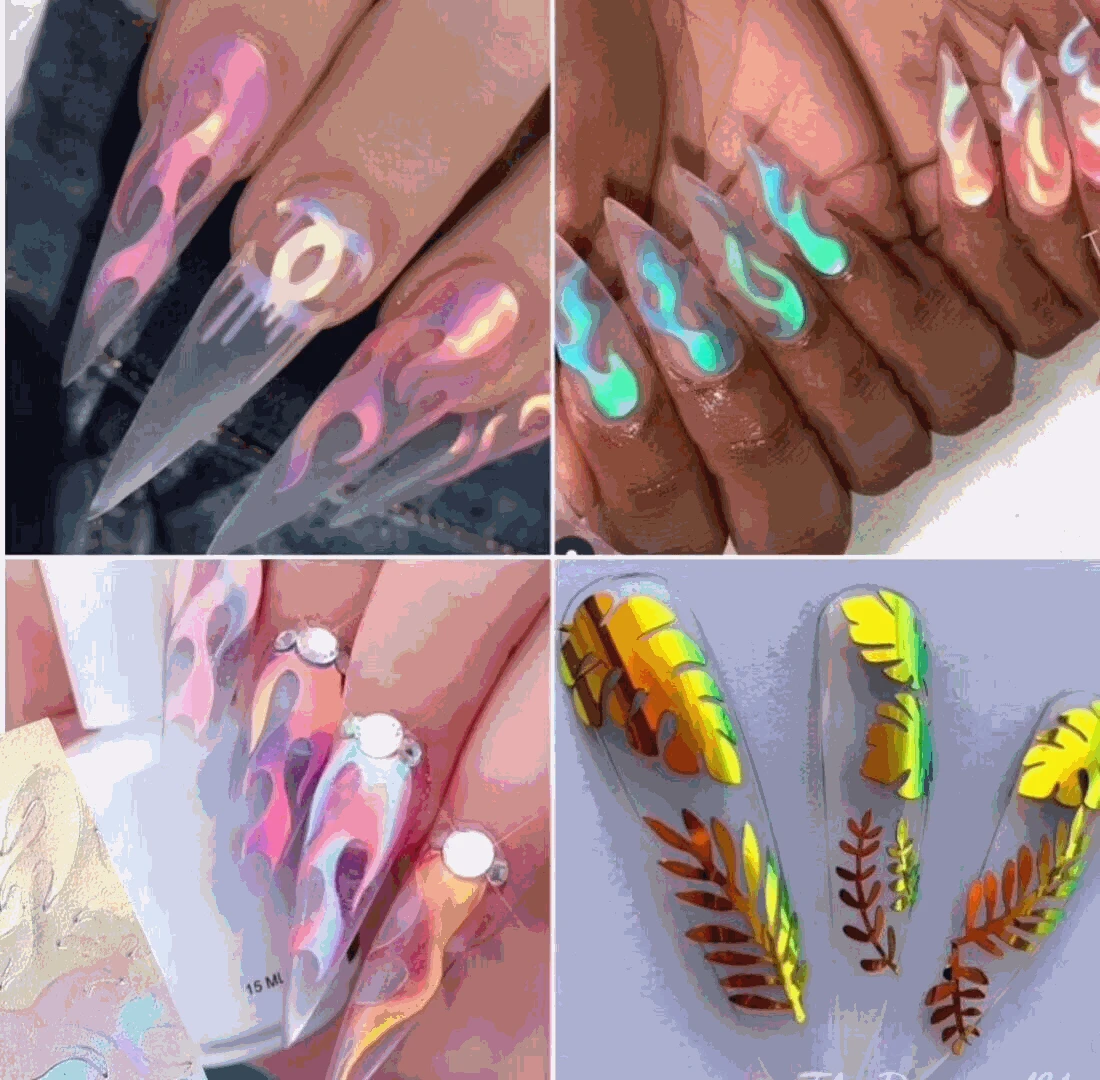 Фольга лазер, фольга для ногтей, голографический гвоздь, наклейки для ногтей, трафарет Настоящее пламя Нейл-арт (ФМР) для длинных ногтей огнеупорный дизайн ногтей